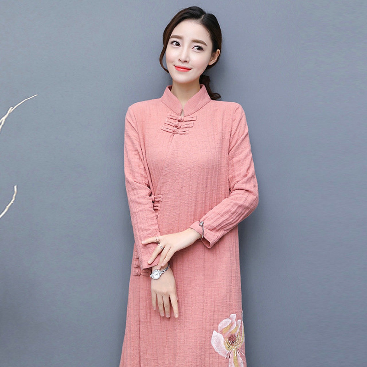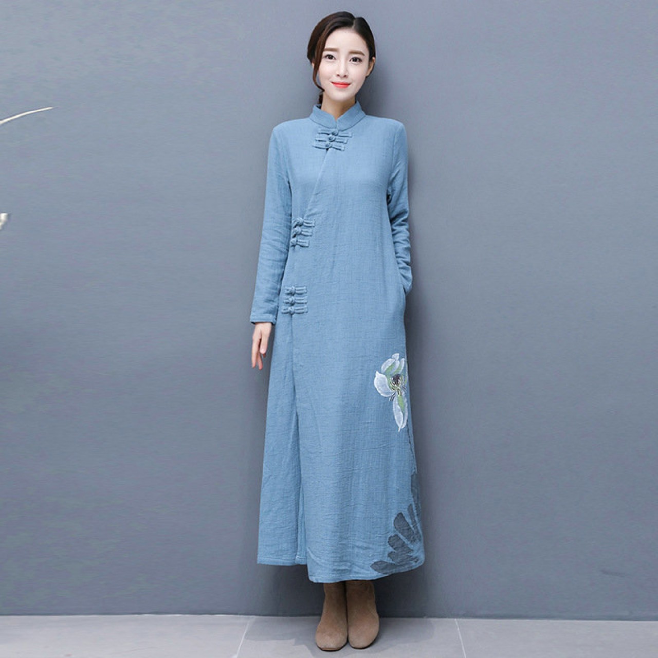 秋冬装新款手绘棉麻茶服女中国风居士服外套大衣