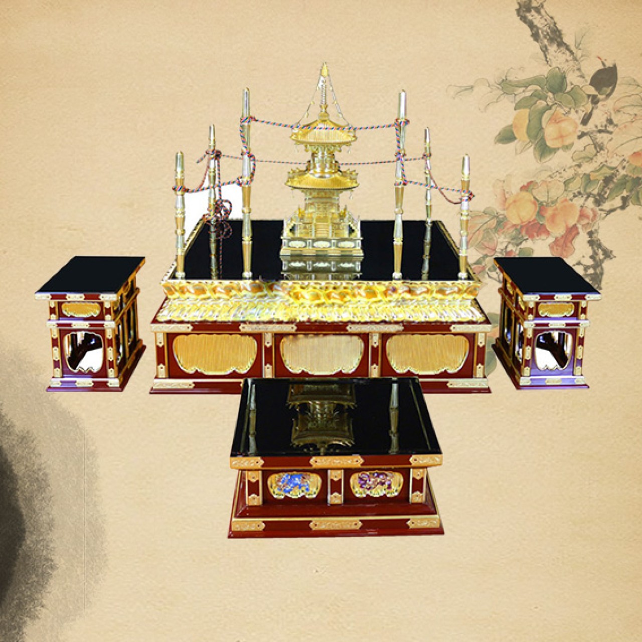 文新佛具 护摩坛 纯手工实木制作钢琴烤漆手工金具饰品手工彩绘24K贴金