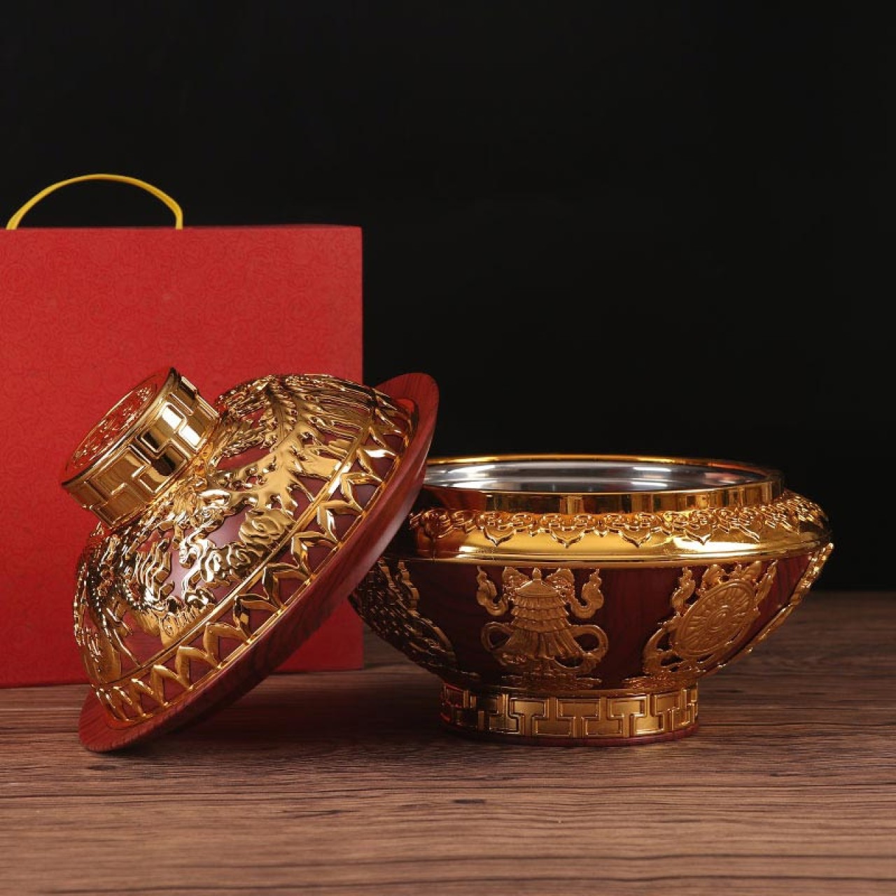 厂家批发祥云干果盒供佛五谷米盒佛堂佛教供品盒藏式八吉祥糌粑盒