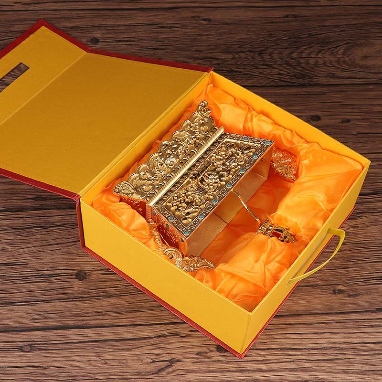 批发藏传佛教用品佛堂供佛摆件双色金八吉祥五谷盒供品盒厂家特价