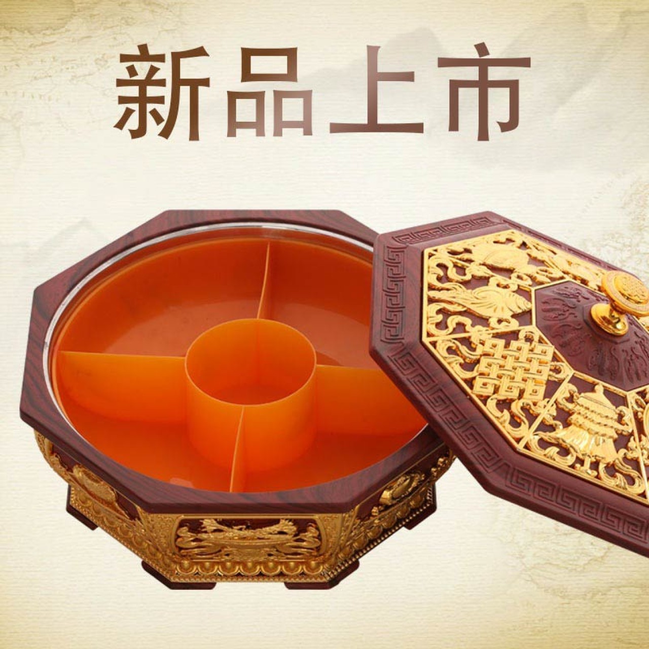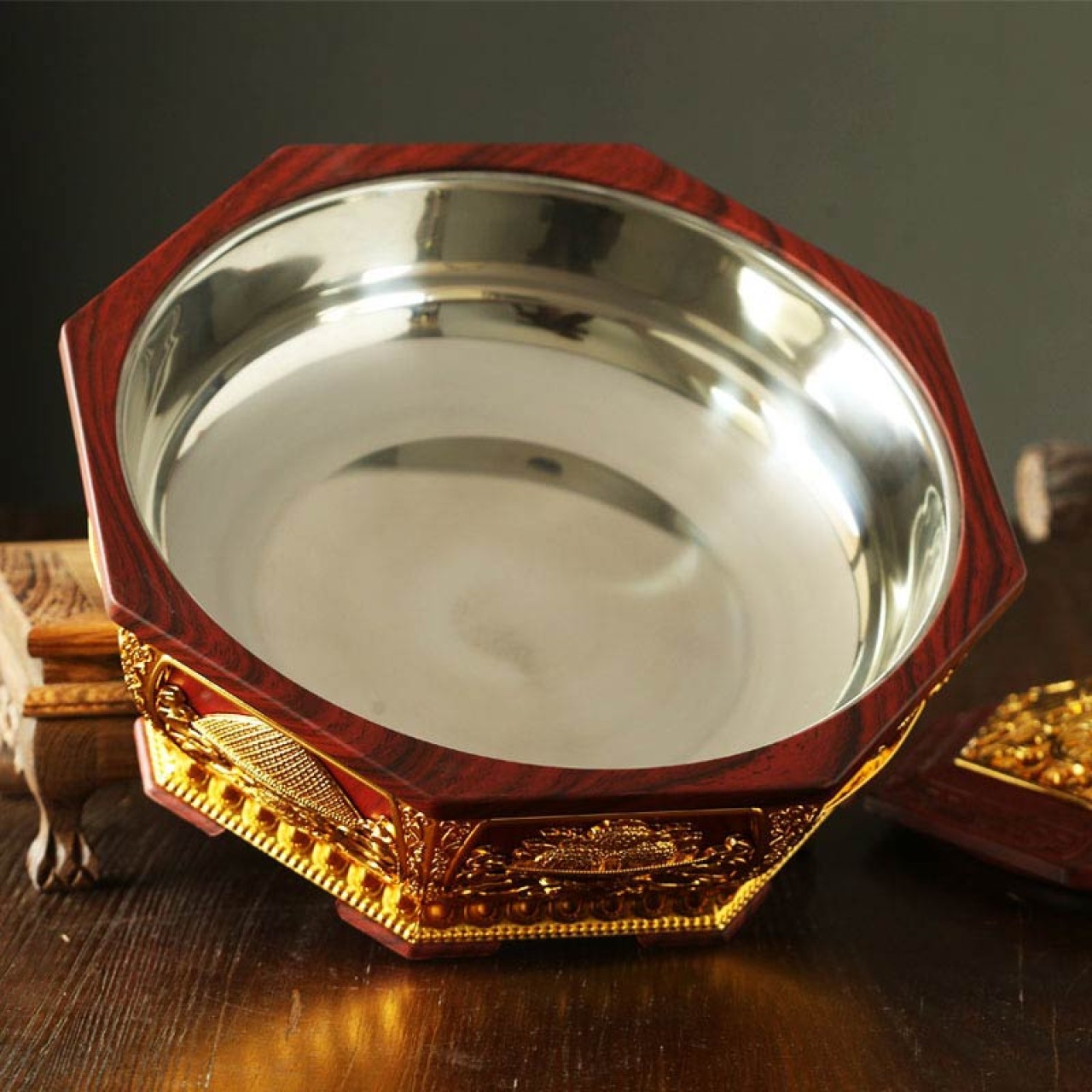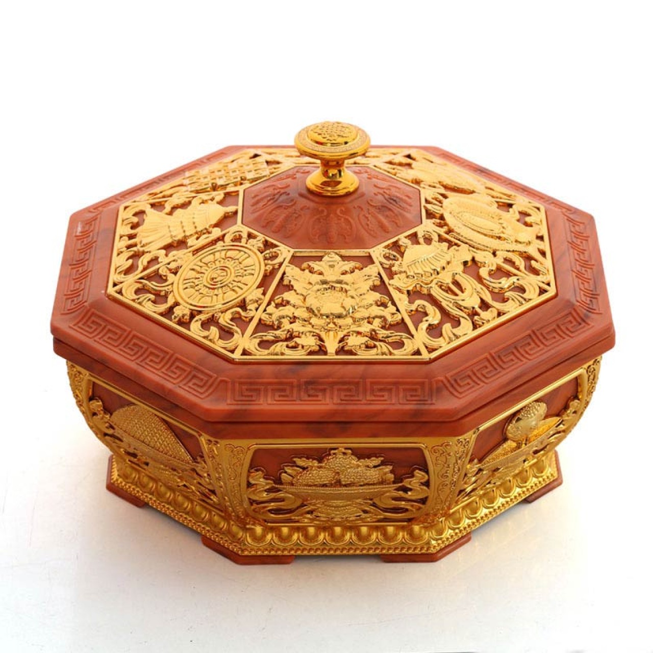 厂家直销藏式八吉祥八角果盘素面供果盘干果盒不锈钢内胆茶几摆件