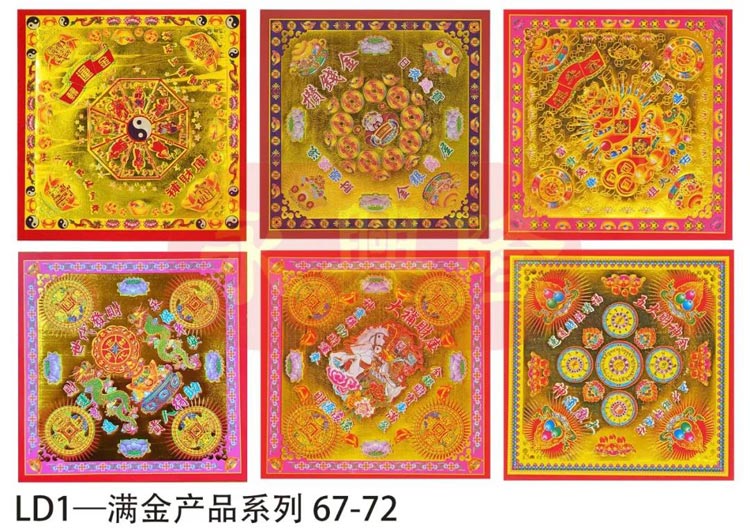 小双面满金系列是我厂的热销产品之一。本系列涵盖范围广阔、款款印刷精美、全烫金版面,适合各类祈福、消灾、驱邪、祈愿等多种用途。产品已增加至九十多款,并可根据客户需求定制生产。