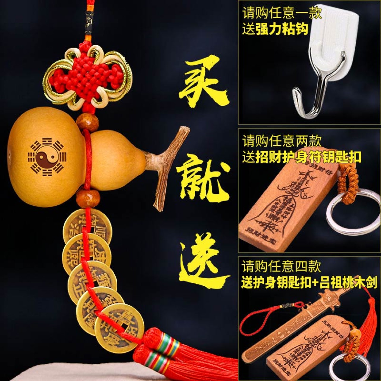 开光葫芦挂件风水天然葫芦五帝钱小摆件家居招财镇宅化煞辟邪转运