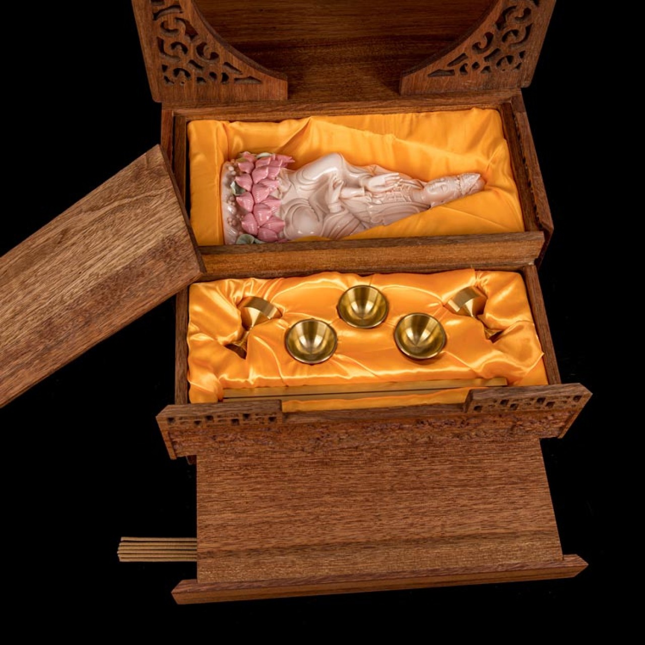 榄仁原木折叠便携开合佛龛无漆榫卯神龛牌位佛像水盏酥油灯供桌