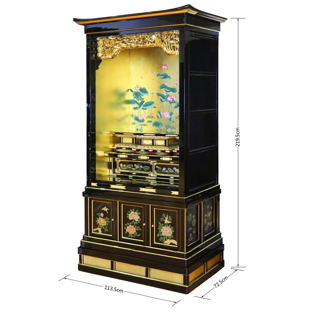 文新佛具 净土30号纯手工实木制作 钢琴烤漆手工金具饰品卷草烫金纱网饰品手工采绘24K贴金