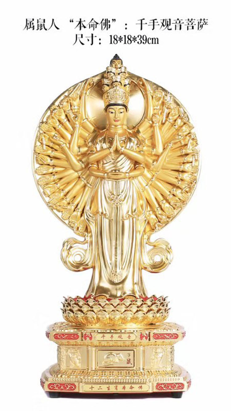 千手观音菩萨是大慈悲的象征,能利益安乐一切众生。属鼠人与千手观音菩萨感应力最强,鼠年生人虔心供养千手观音之本命佛法像时,可以消灾解难,心想事成。