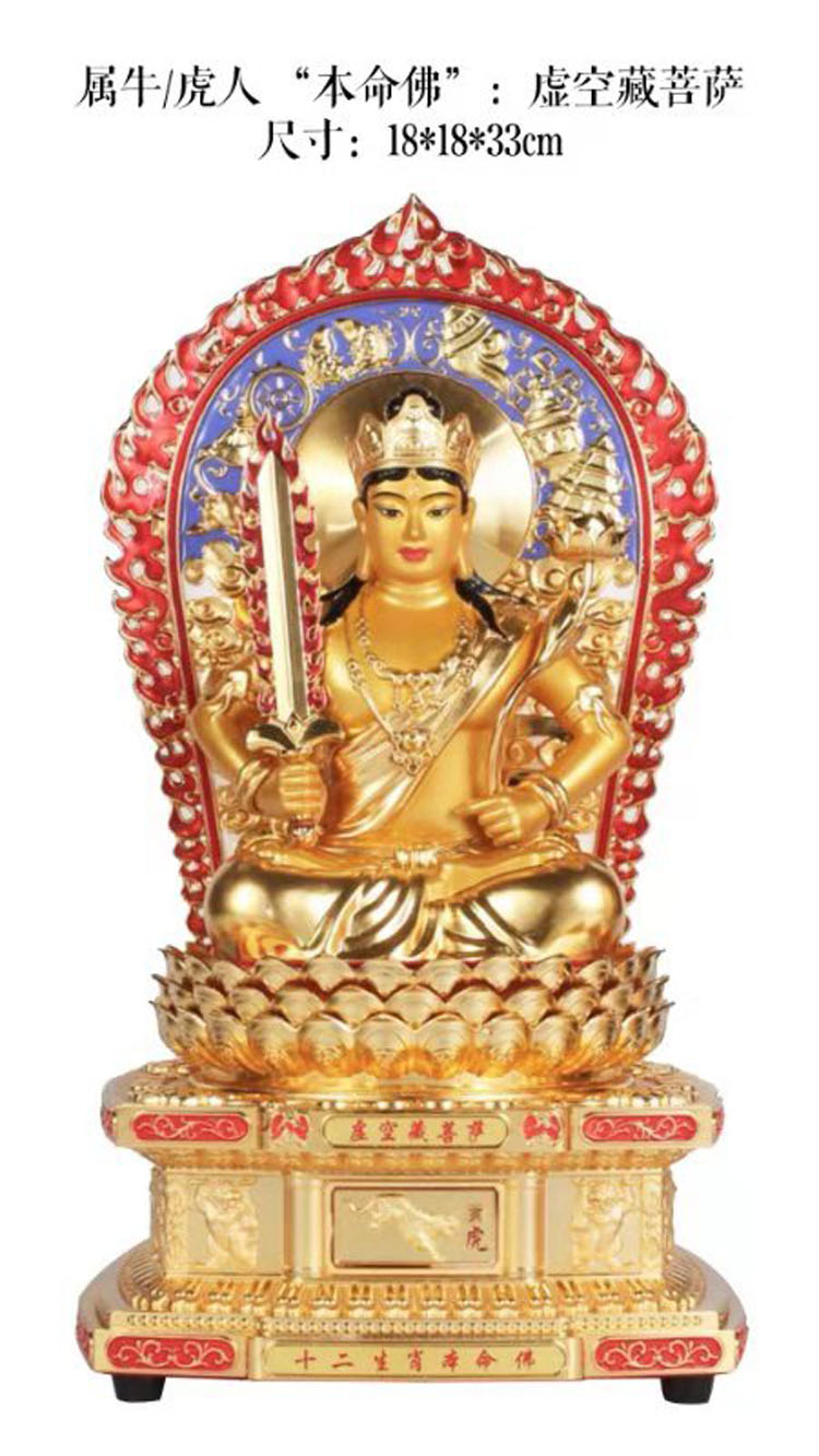 虚空藏菩萨是智慧、功德和财富的象征,其智慧、功德、财富如虚空一样广阔无边。属牛、属虎人与虚空藏菩萨感应力最强,牛年、虎年生人虔心供养虚空藏菩萨之本命佛法像时,可保财路畅通,财源广进