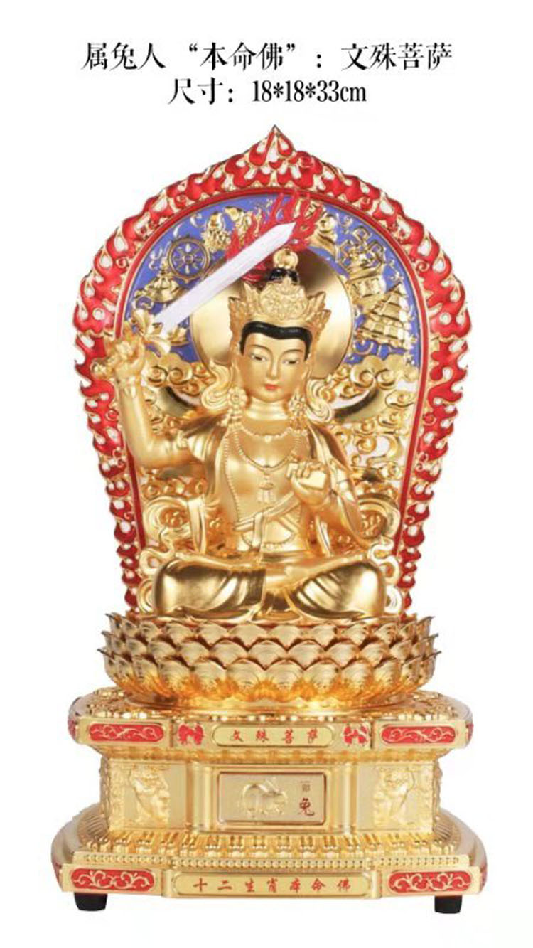 文殊师利菩萨是大智慧的象征,能开发智慧,提高悟性。属兔人与文殊师利菩萨感应力最强,兔年生人虔心供养文殊师利菩萨之本命佛法像时,能帮助小孩学业有成、官人福禄双增、商人增财增福。