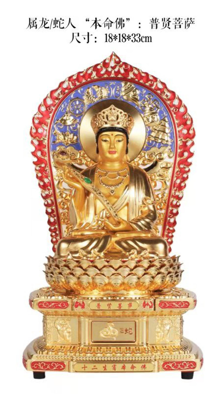 普贤菩萨是礼德和大行愿的象征,能使人身心安稳。属龙、属蛇人与普贤菩萨感应力最强,龙年、蛇年生人虔心供养普贤菩萨之本命佛法像时,能获菩萨保佑,有延命益寿之不可思议力量。