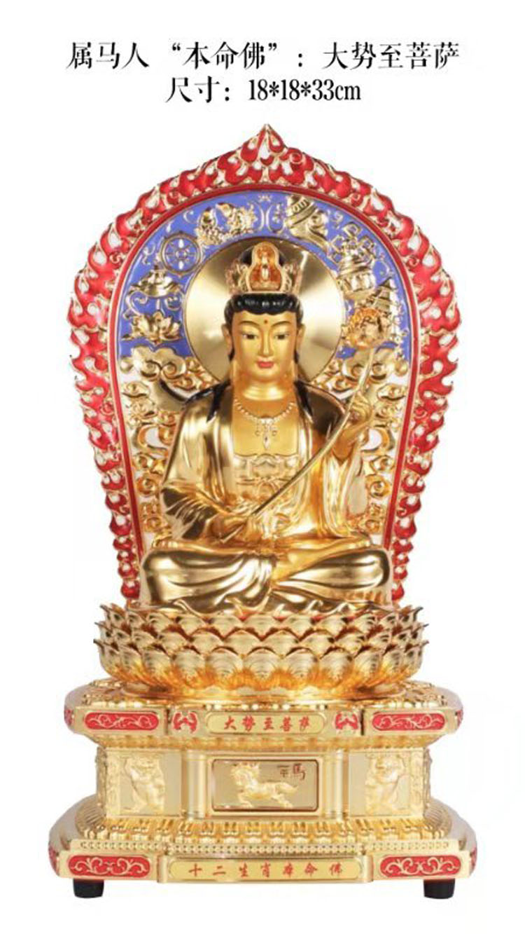 大势至菩萨是智慧之光的象征,能使人达到理想的境界。属马人与大势至菩萨感应力最强,马年生人虔心供养大势至菩萨之本命佛法像,将跟随佛光道路前行,人生道路一帆风顺。