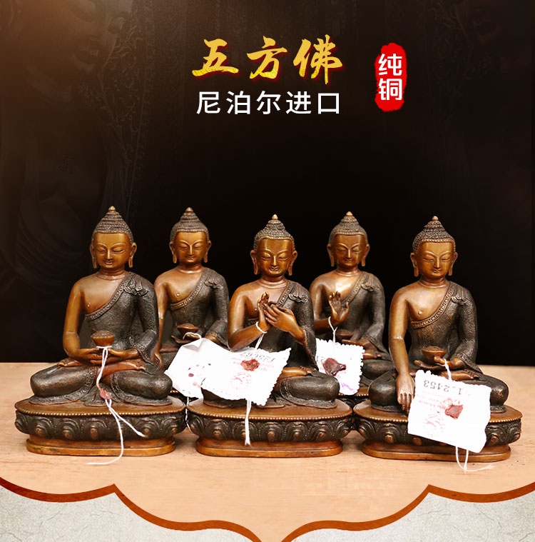 尼泊尔铜五方佛复古铜佛像蜜宗摆件7寸佛像5个一套