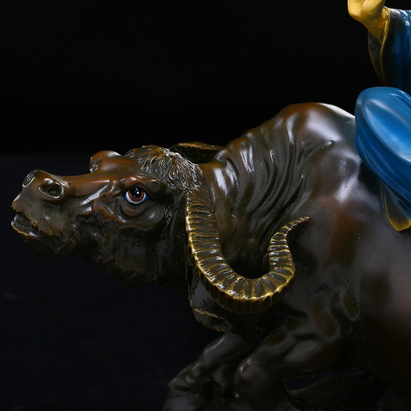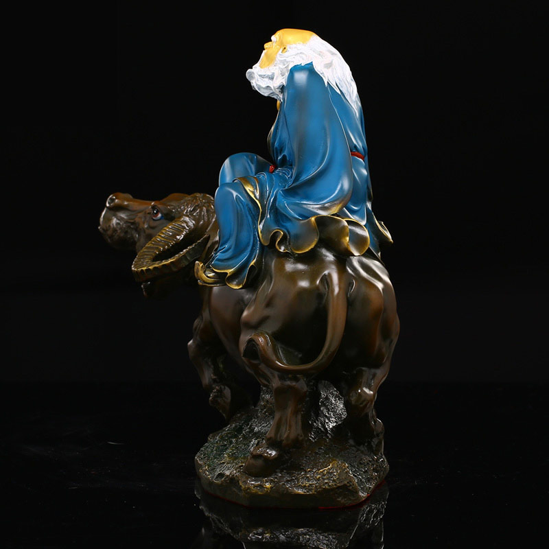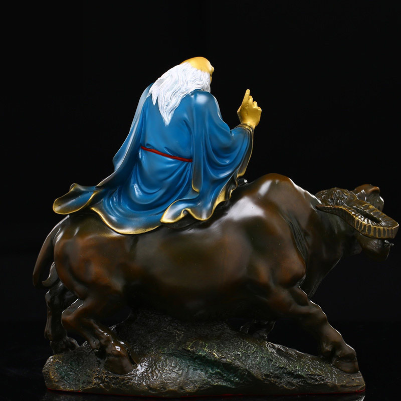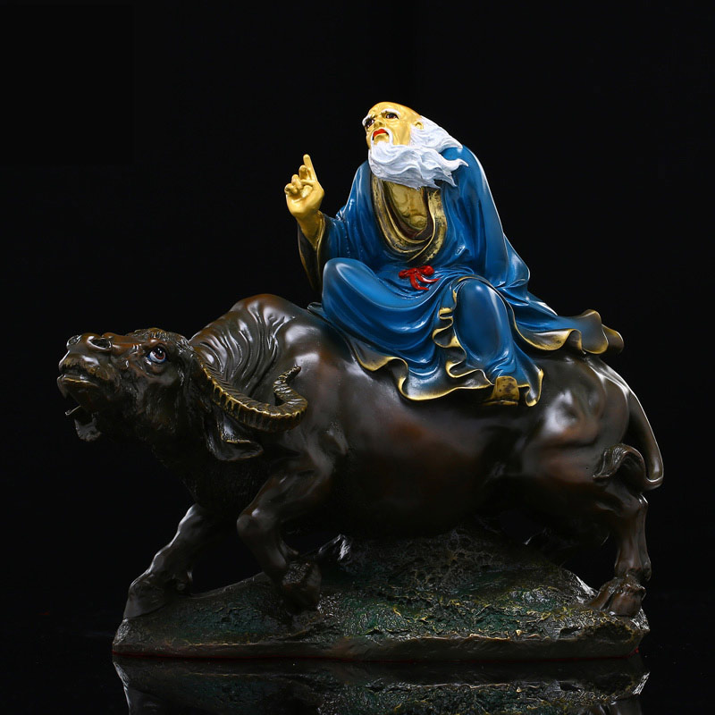 太上老君道教道摆件德天尊神像纯铜铜彩绘老子骑牛家居摆设