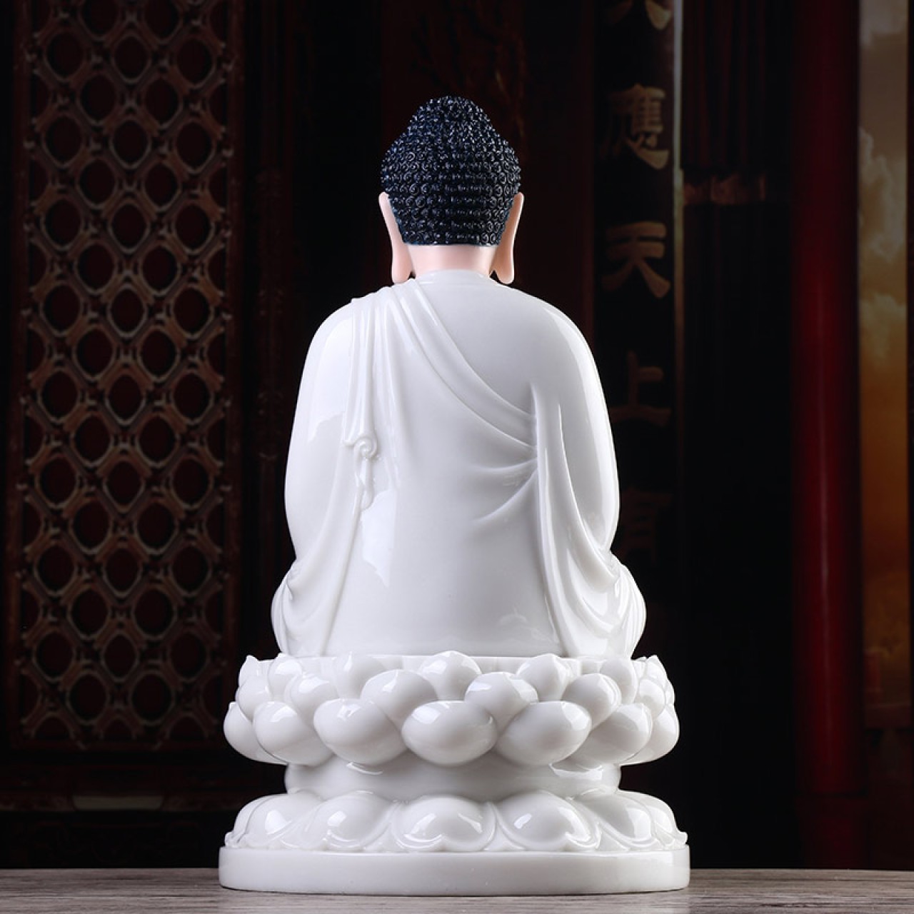 汉白玉玉瓷释迦牟尼佛像居家供奉阿弥陀佛三宝佛开光摆件