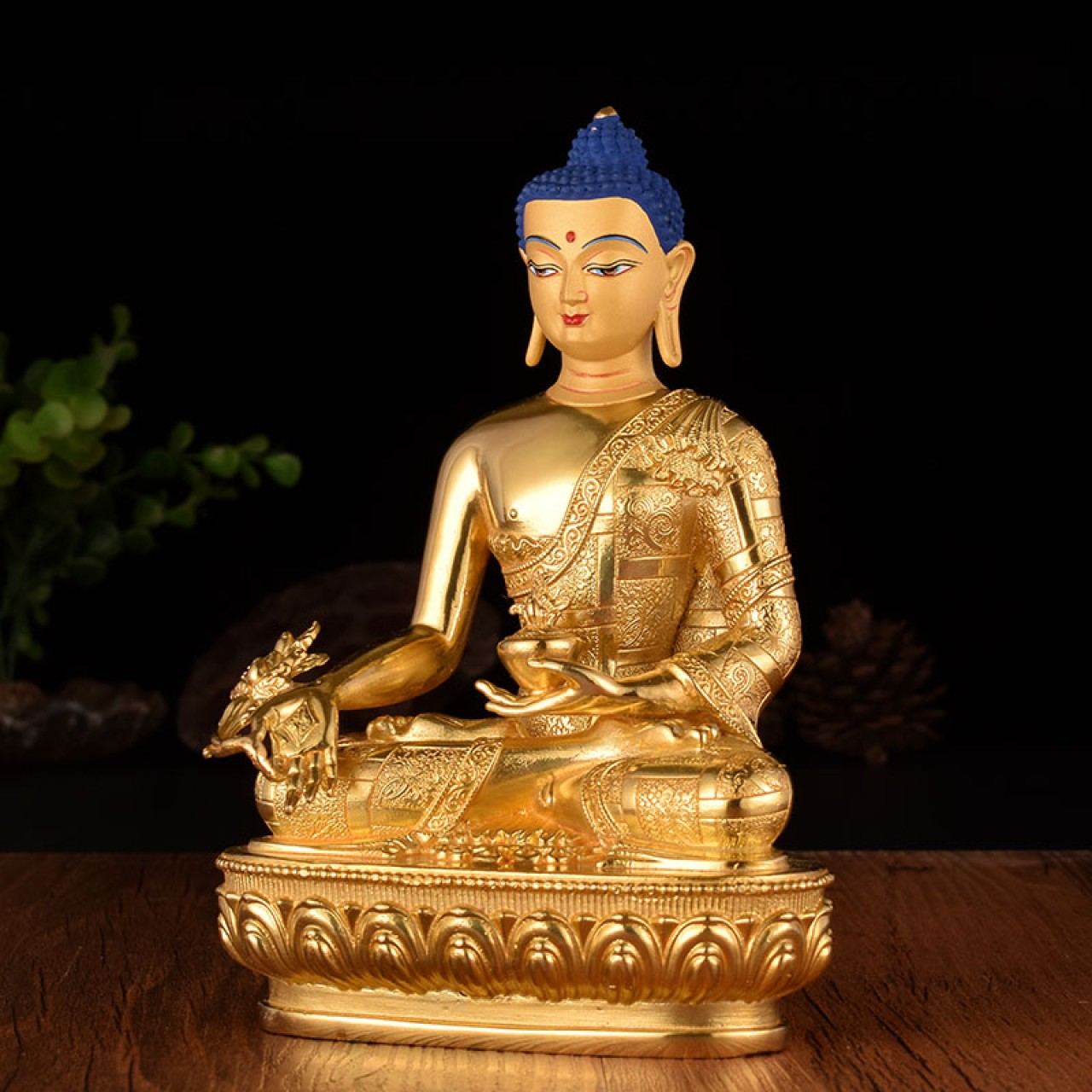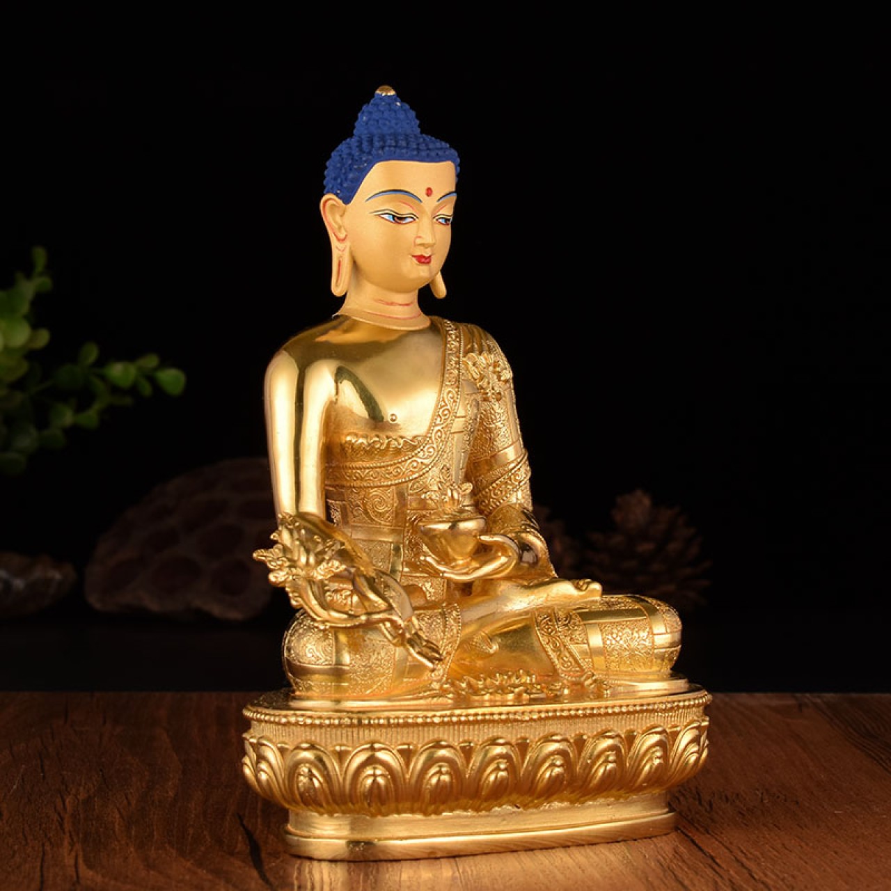 佛教用品 台湾纯铜精工鎏金雕花密宗佛像10寸药师佛摆件高