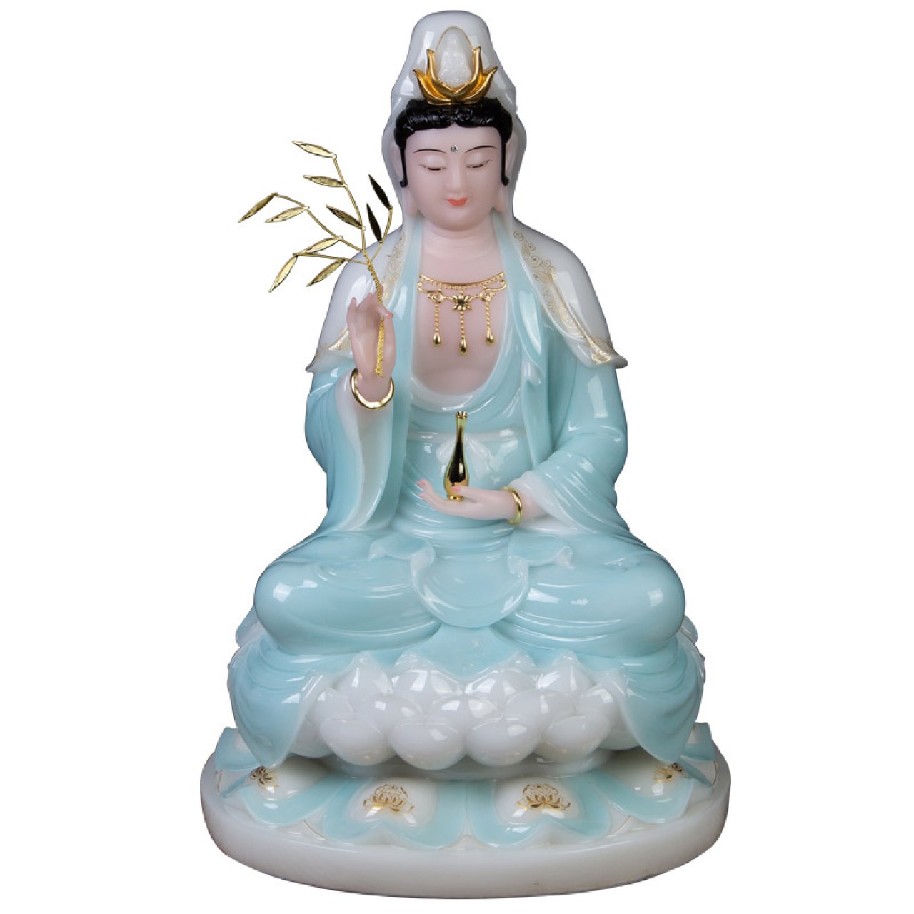 天蓝手绘汉白玉观音菩萨佛像南海观世音神像家居供奉保平安观自在