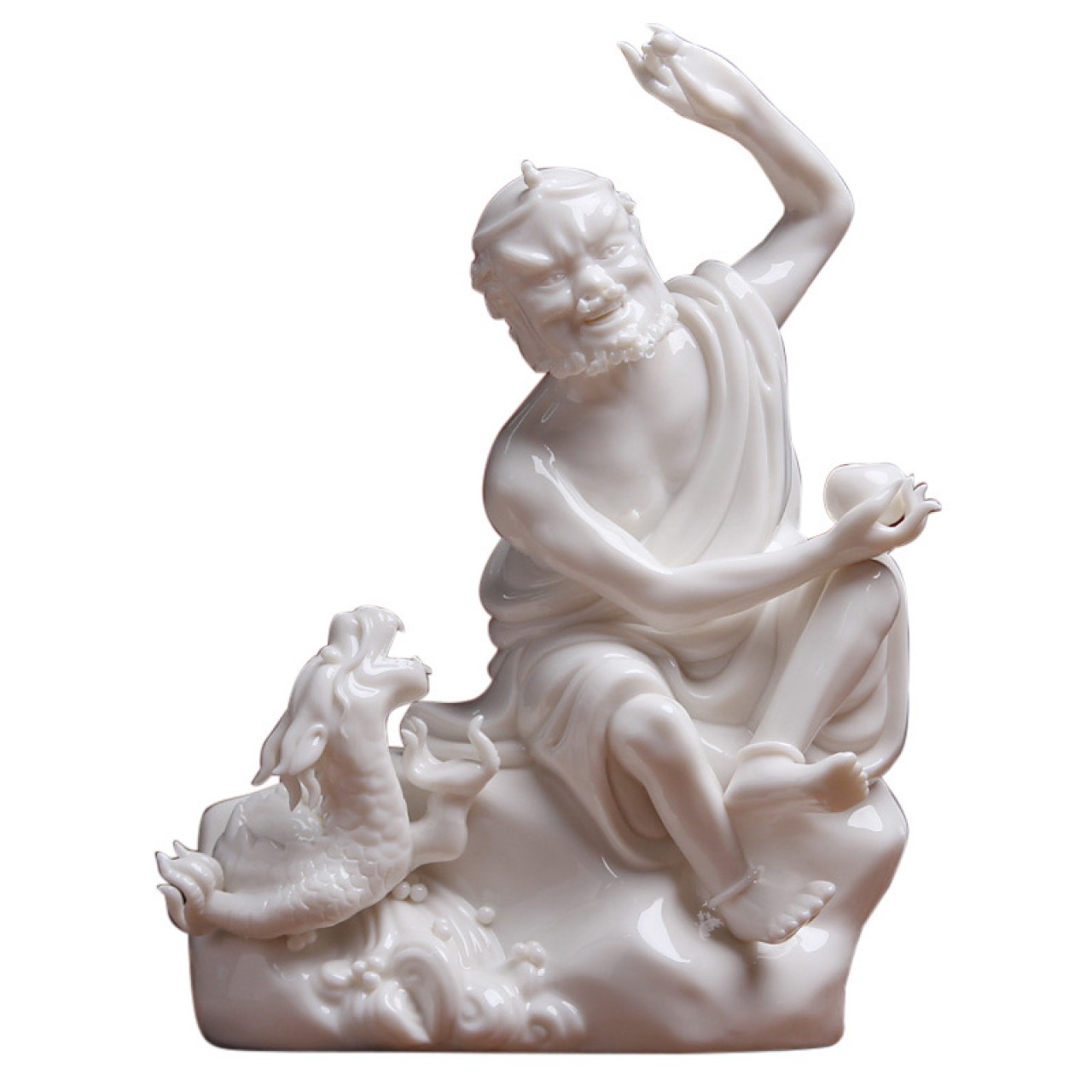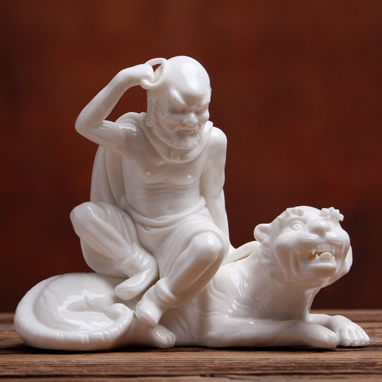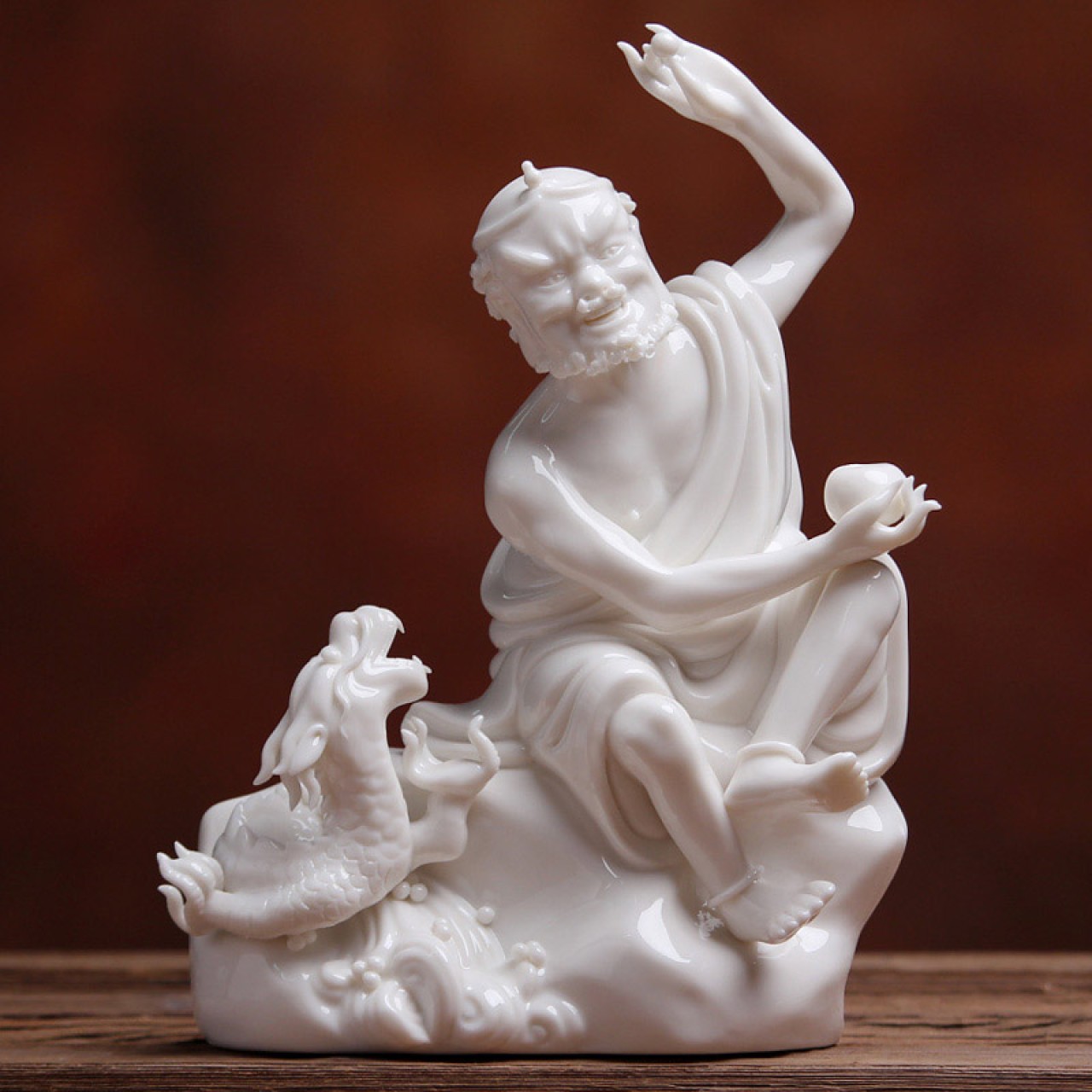 德化白瓷玉瓷十八罗汉佛像艺术品陶瓷降龙家居装饰人物风水摆件