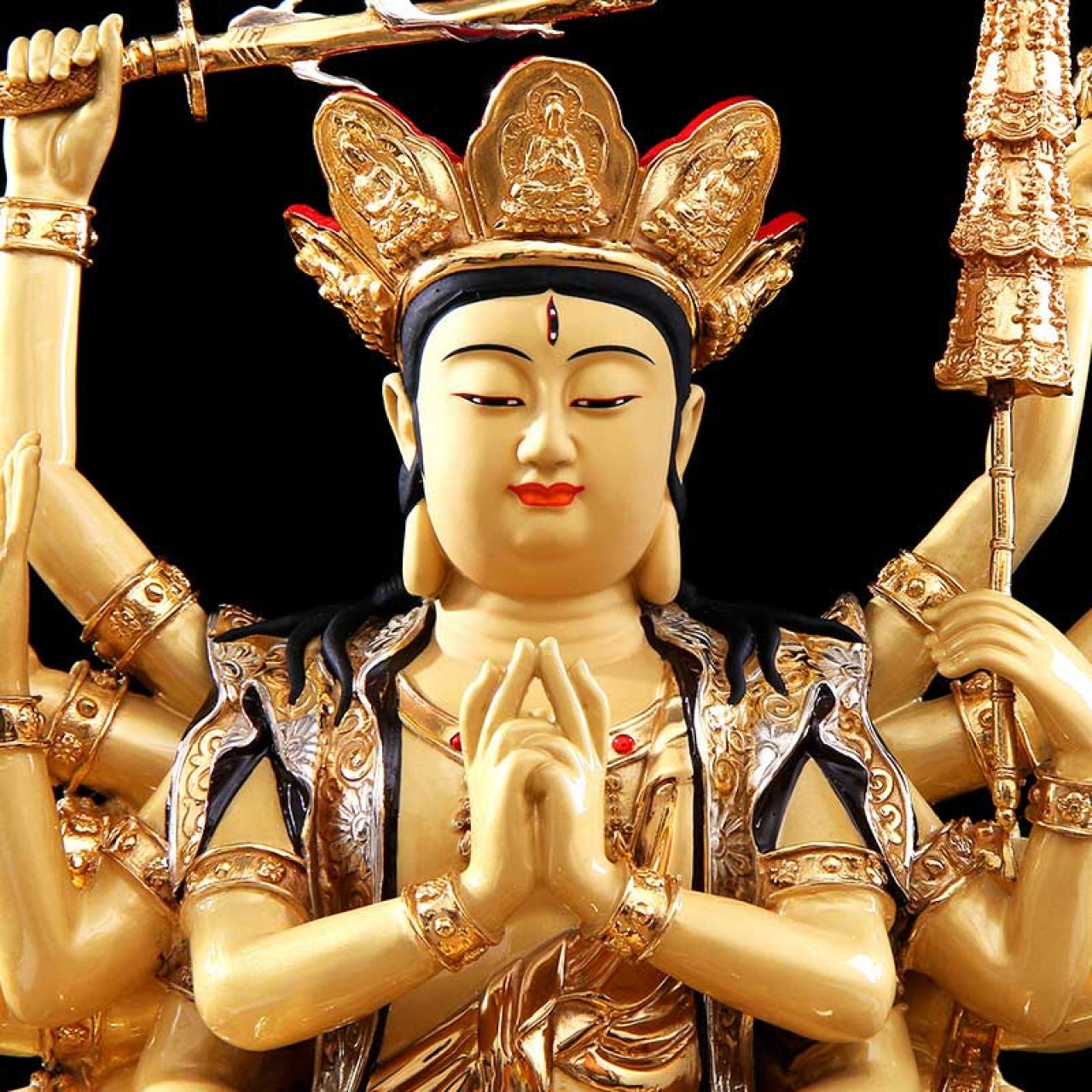 台湾铜鎏金准提菩萨佛像供奉家用开光准提佛母像密宗佛像摆件