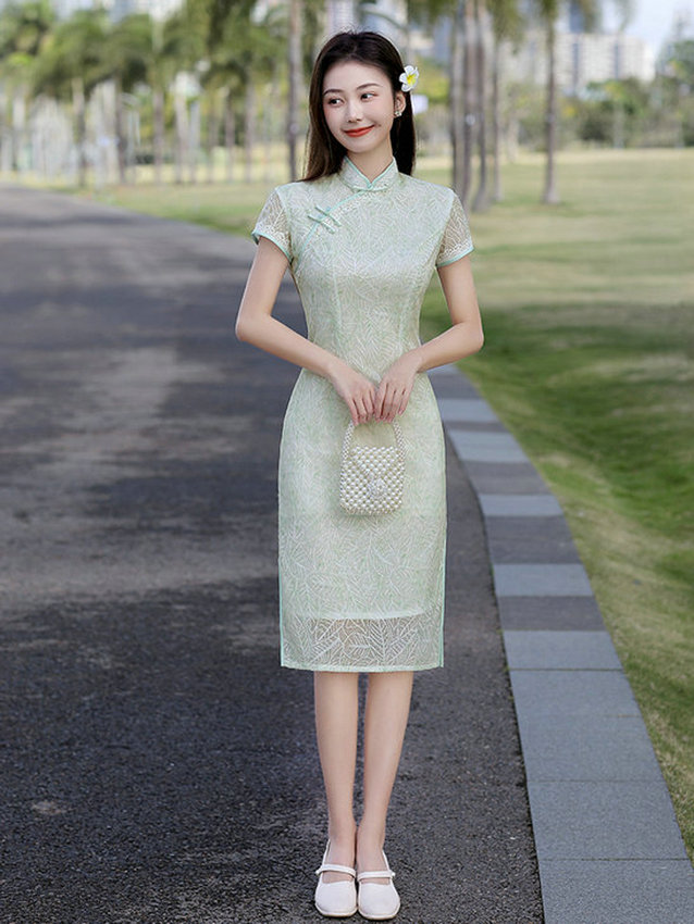 新款复古年轻款少女小清新甜美改良蕾丝连衣裙夏季