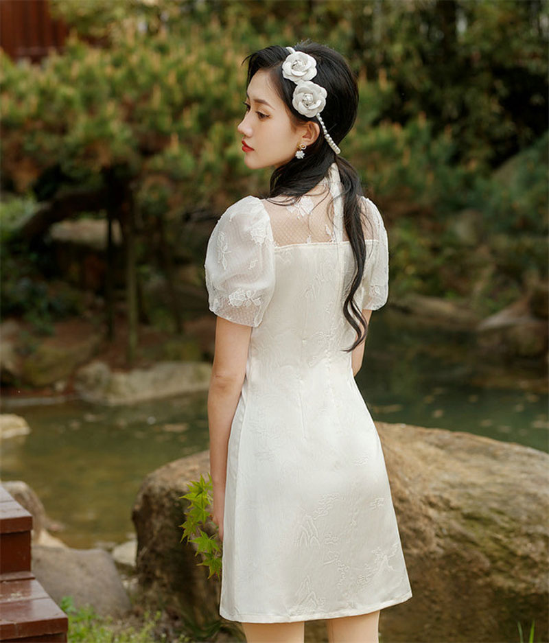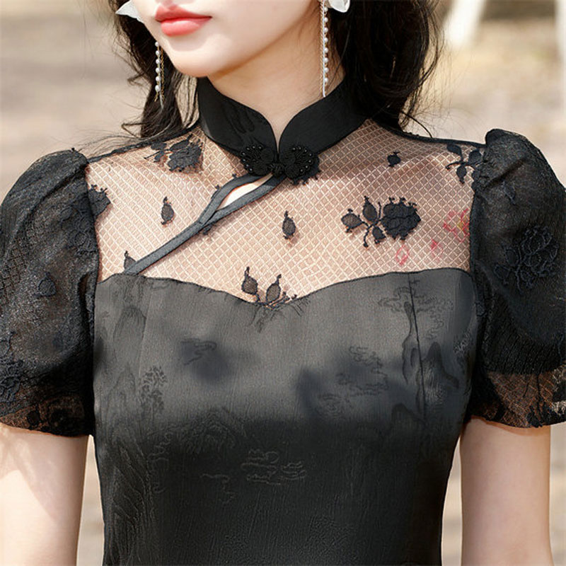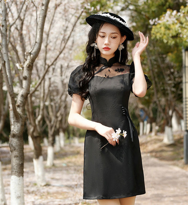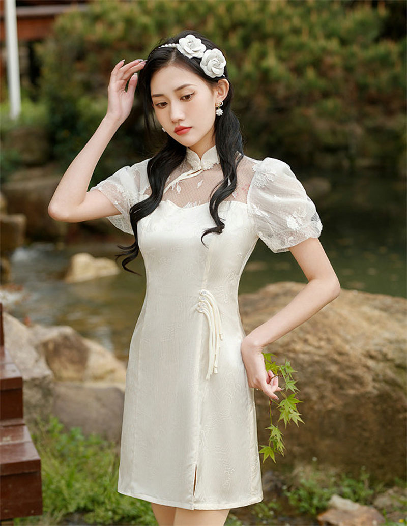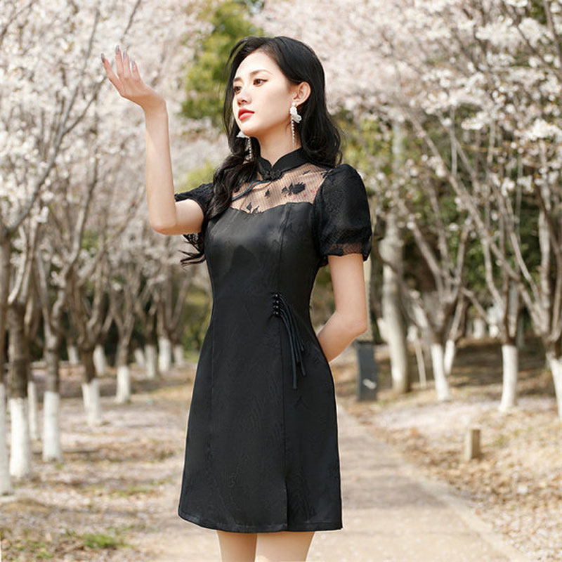 新款少女小个子短款旗袍连衣裙泡泡袖优雅时尚日常旗袍