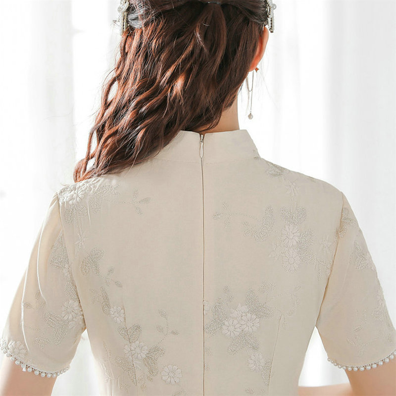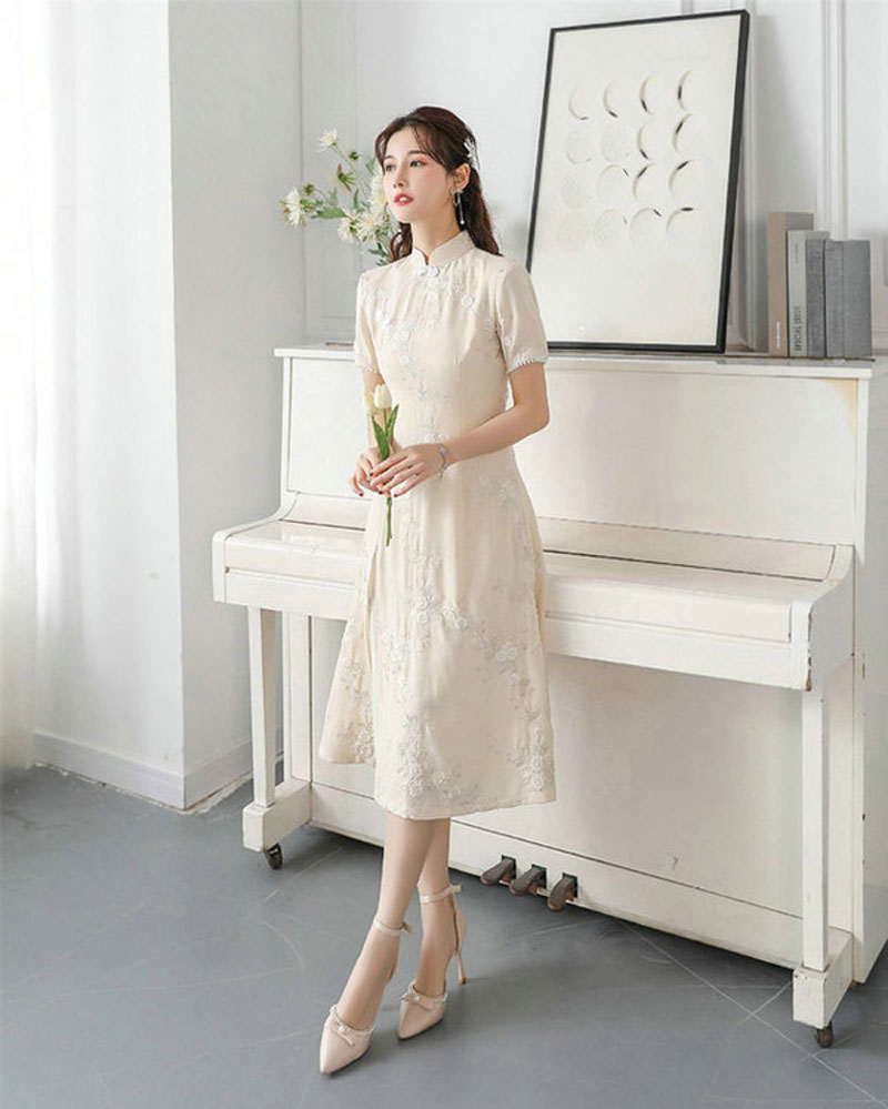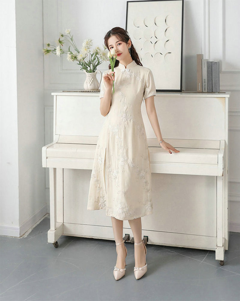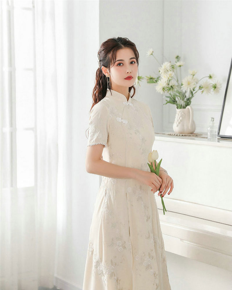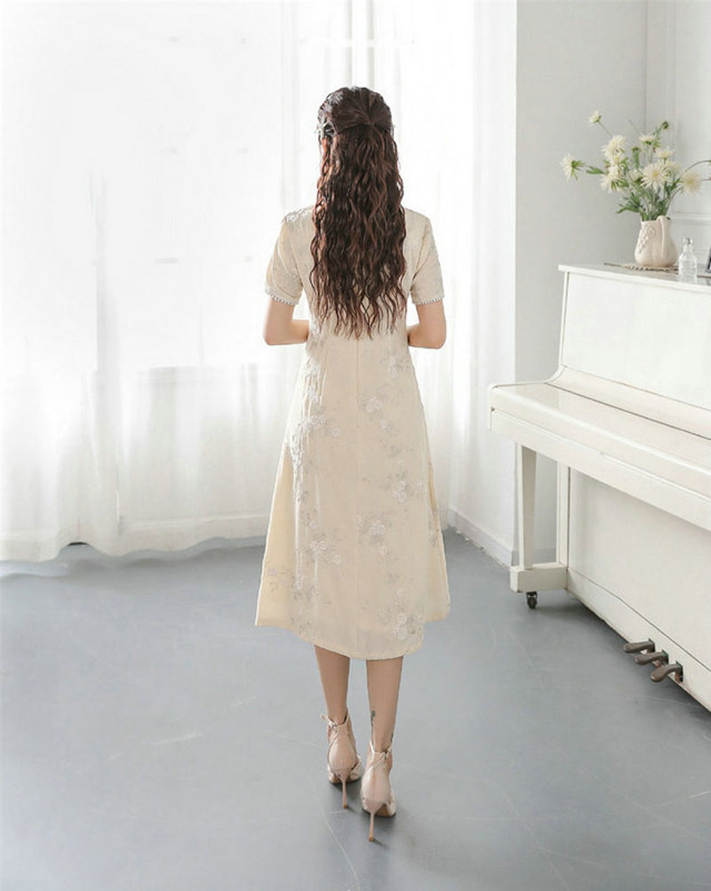 新款复古小众设计高级感白色新中式中国风连衣裙