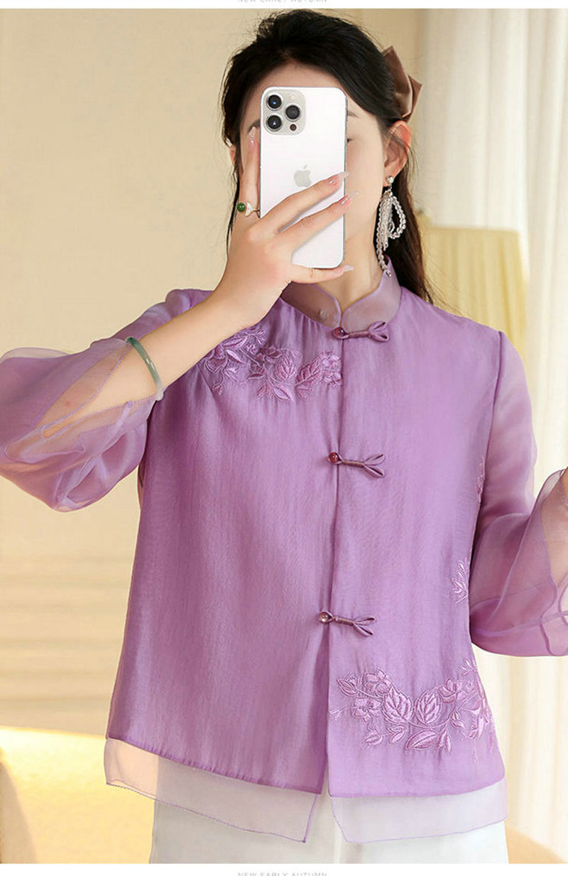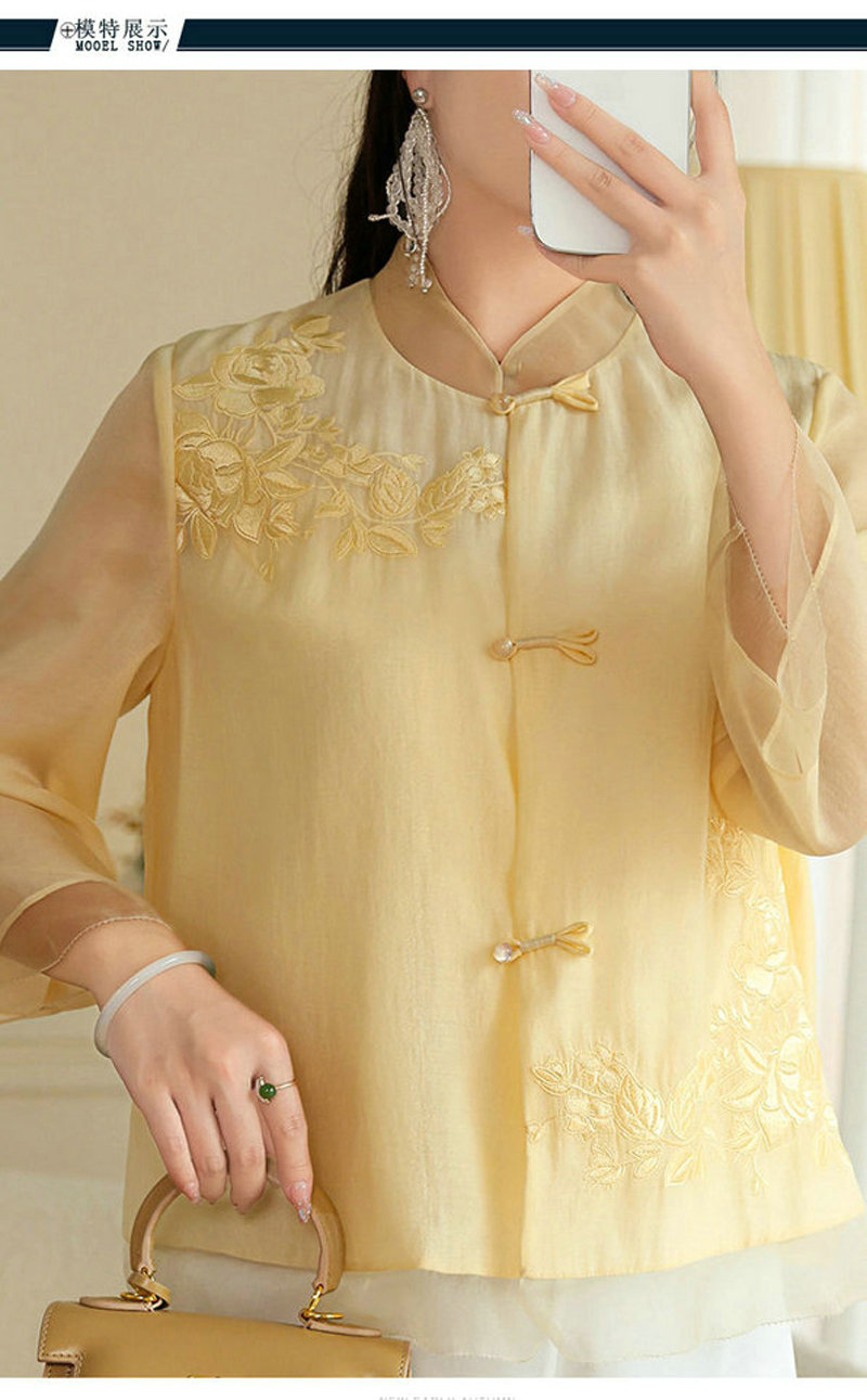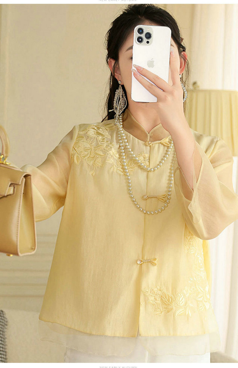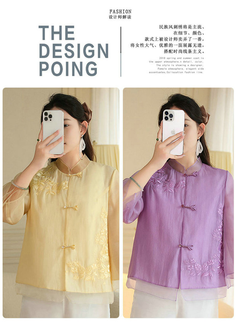 女士衬衫改良新中式唐装时尚国潮刺绣中式立领中长袖上衣外套