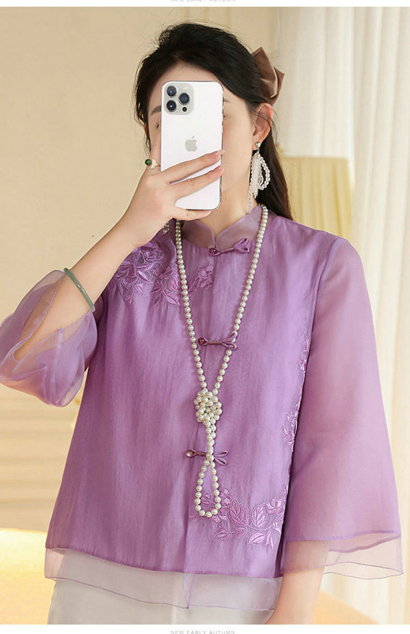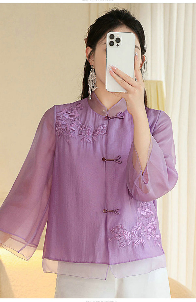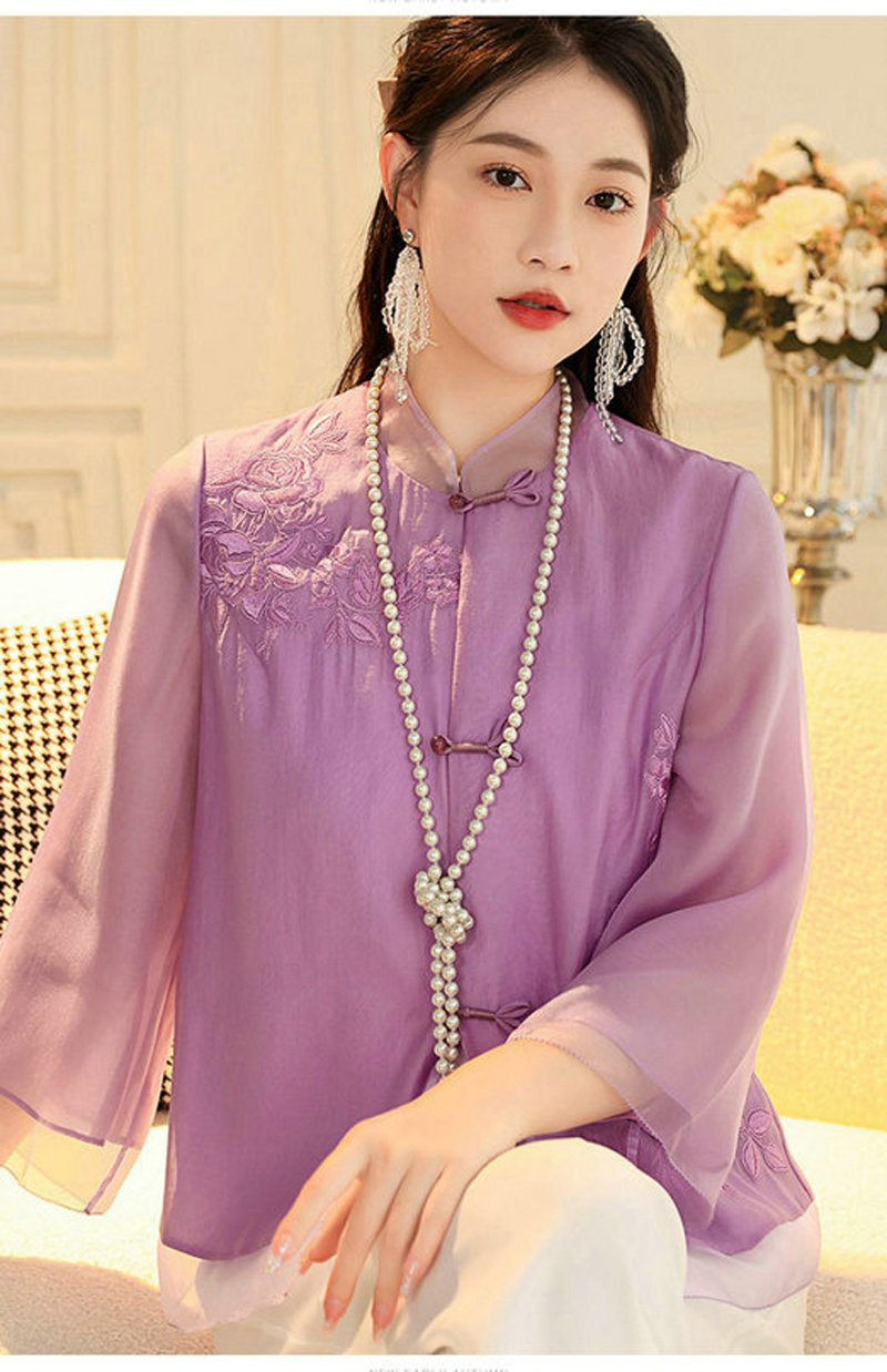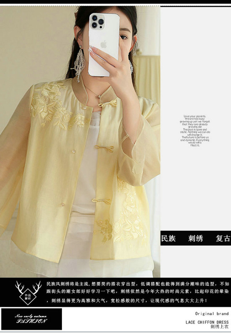 女士衬衫改良新中式唐装时尚国潮刺绣中式立领中长袖上衣外套