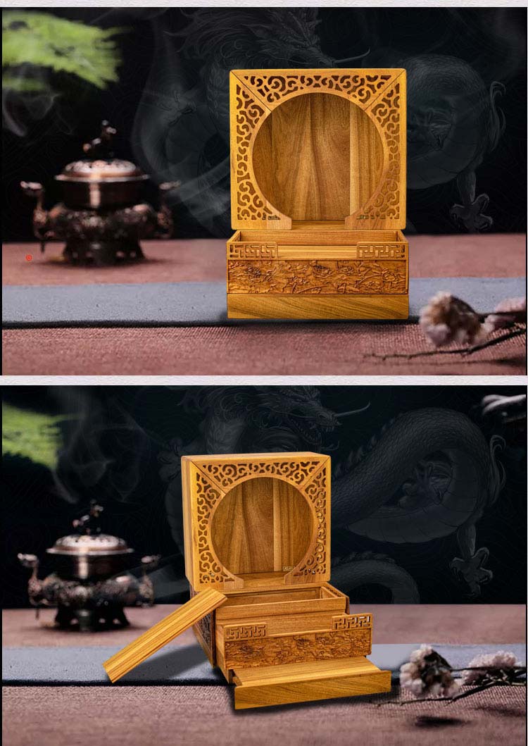 金丝柚原木折叠便携开合佛龛无漆榫卯神龛牌位佛像水盏酥油灯供桌