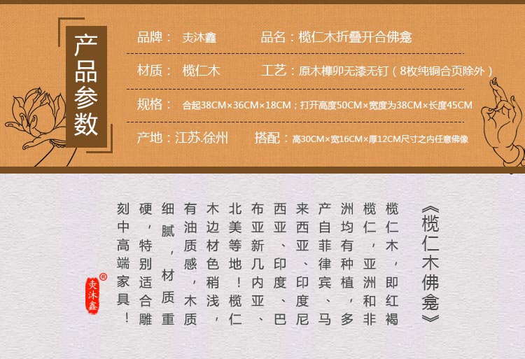 榄仁原木折叠便携开合佛龛无漆榫卯神龛牌位佛像水盏酥油灯供桌