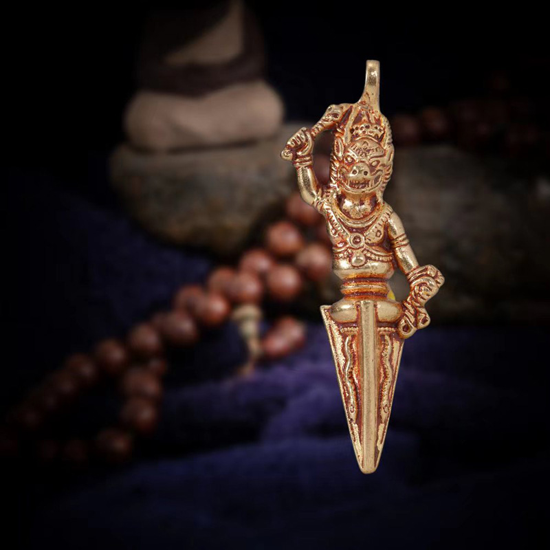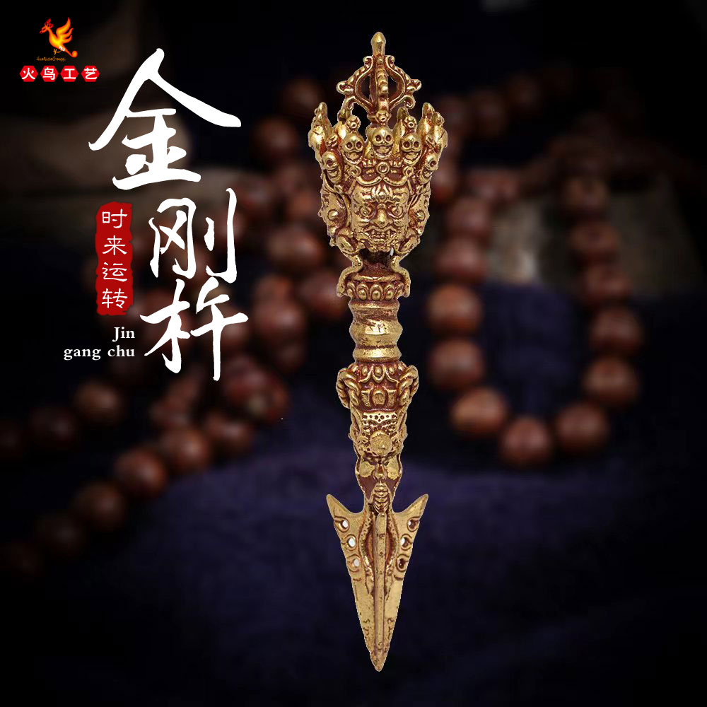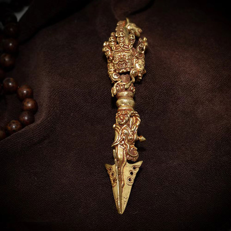 藏传摆件三面普巴金刚杵金刚橛仿古纯铜普巴杵