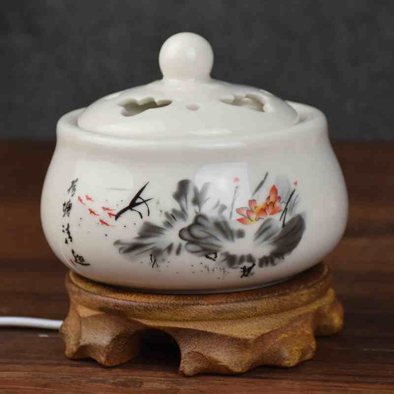 定时调温电子檀香炉 陶瓷香薰炉 沉香炉精油插电香薰灯木屑粉盖子