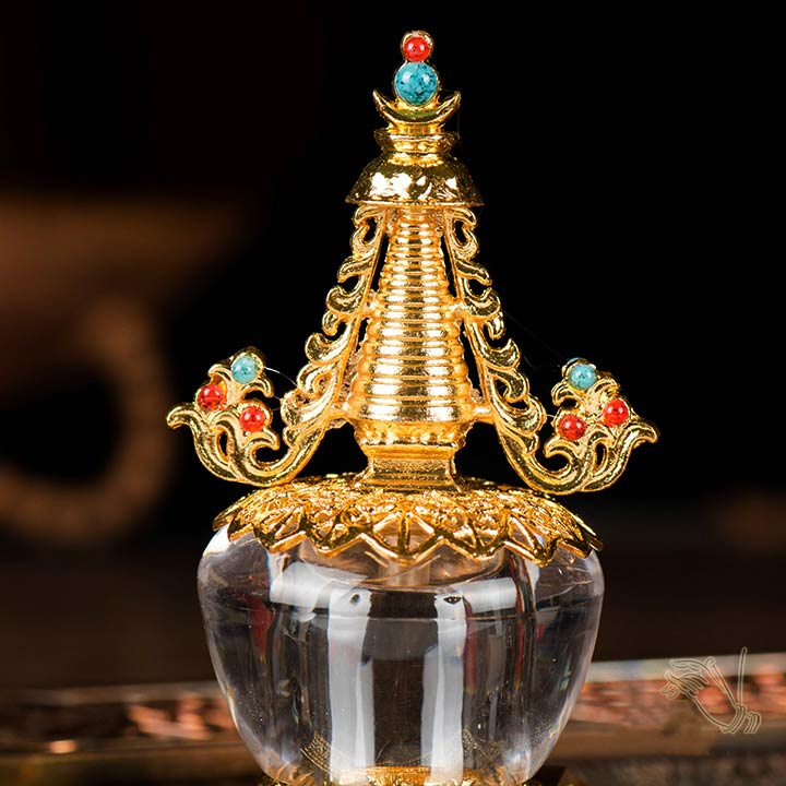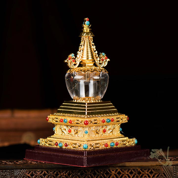 水晶舍利塔佛塔装藏舍利子甘露丸密宗法器6寸精品鎏金菩提塔摆件