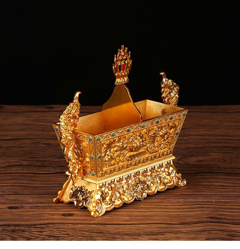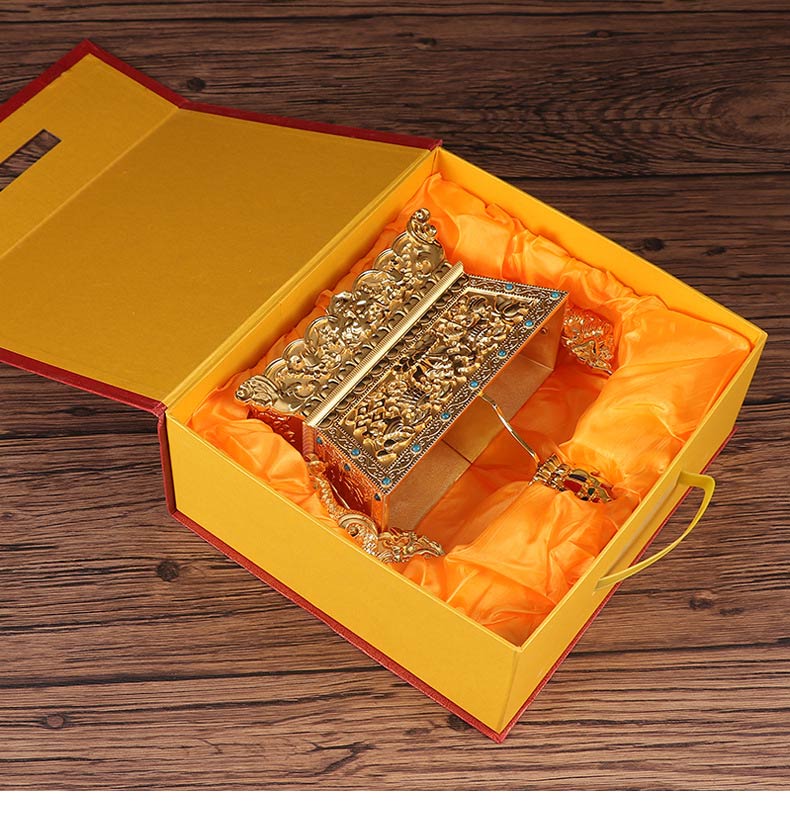 批发藏传佛教用品佛堂供佛摆件双色金八吉祥五谷盒供品盒厂家特价