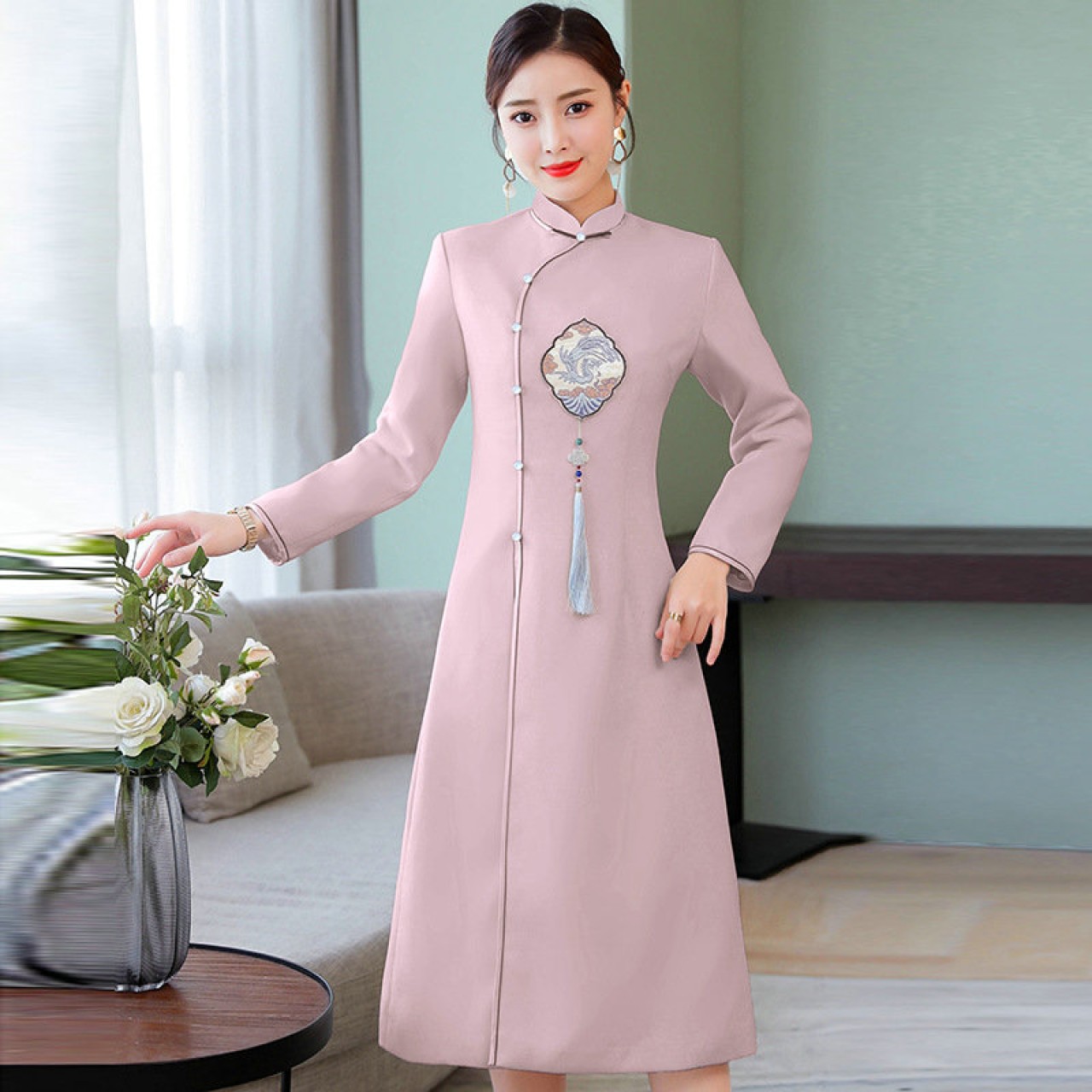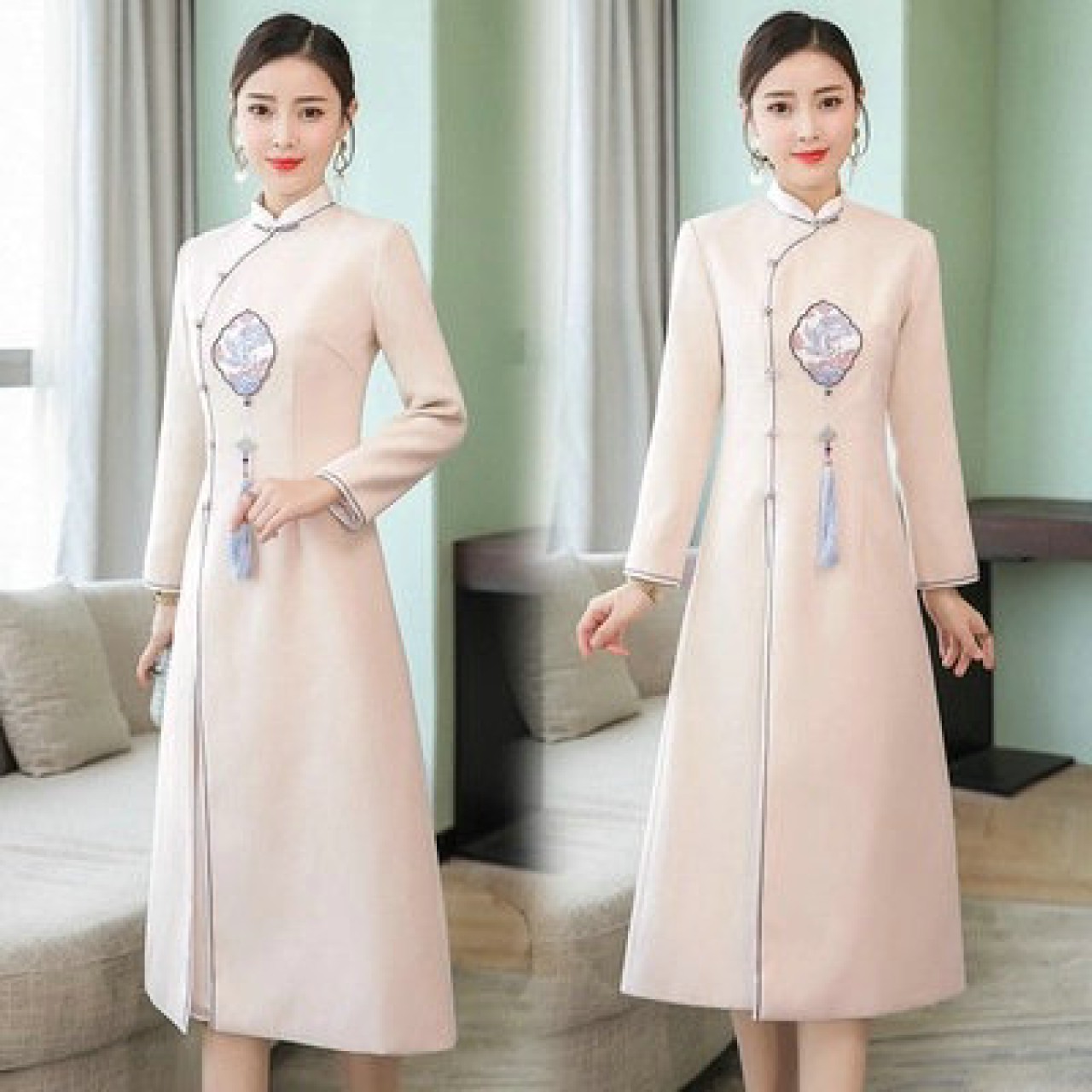 冬装新款改良优雅复古中国风文艺加厚毛呢旗袍裙