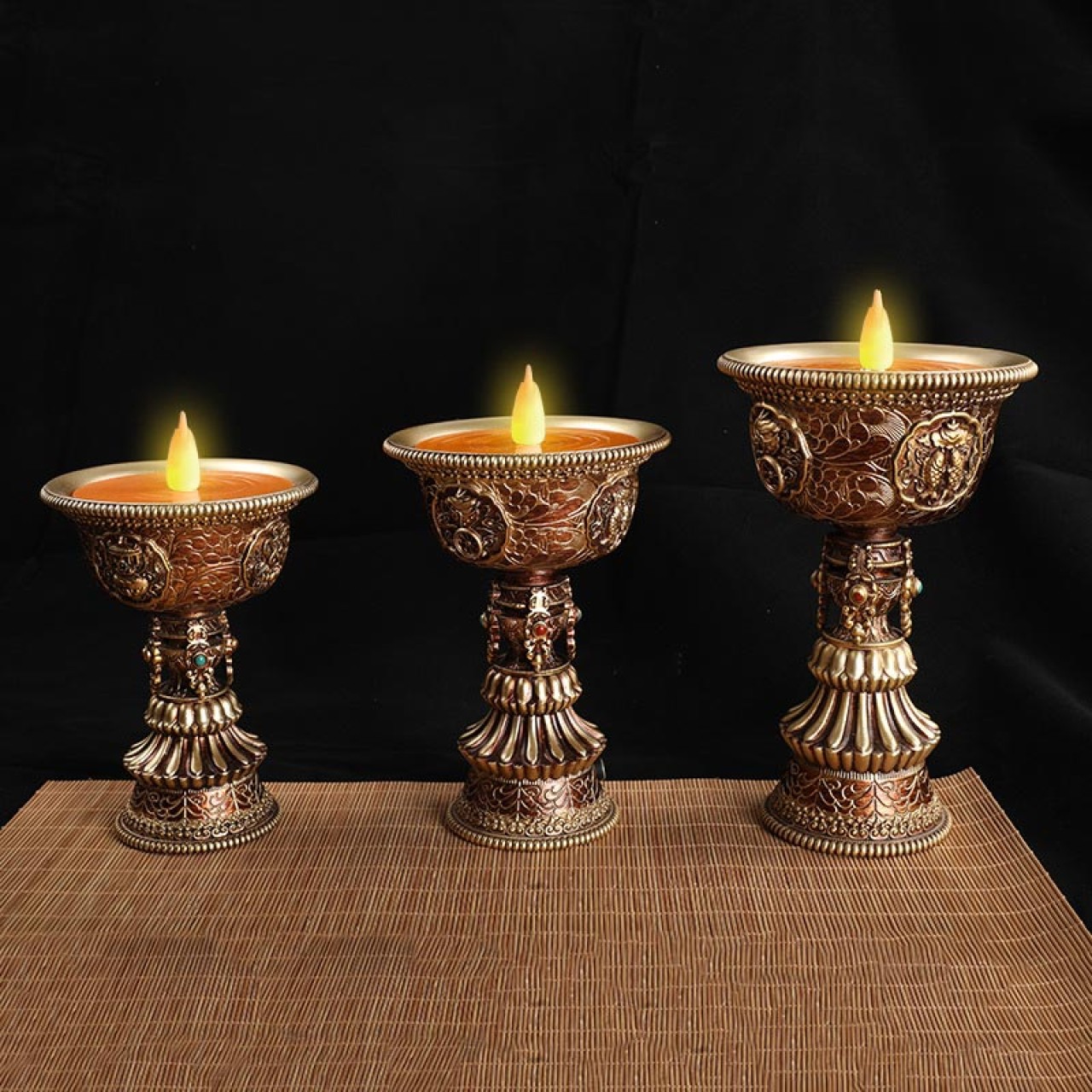 新款佛教祥云电子酥油供灯佛前供奉油灯3D火苗锂电池充电佛灯批发