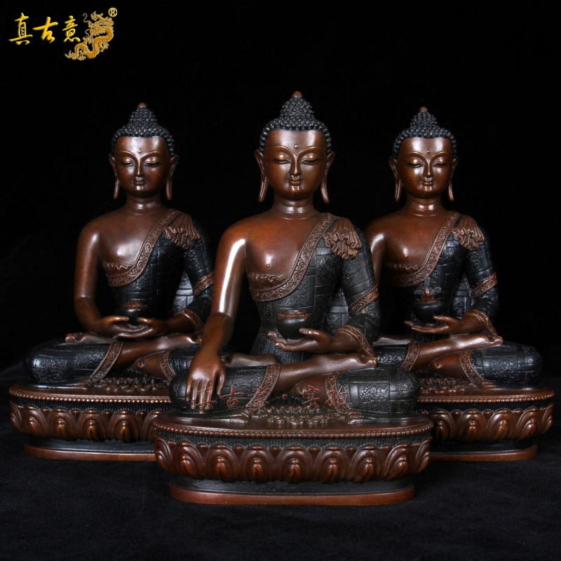 纯铜三宝佛摆件密宗铜释迦牟尼佛药师佛阿弥陀佛三世佛尼泊尔佛像
