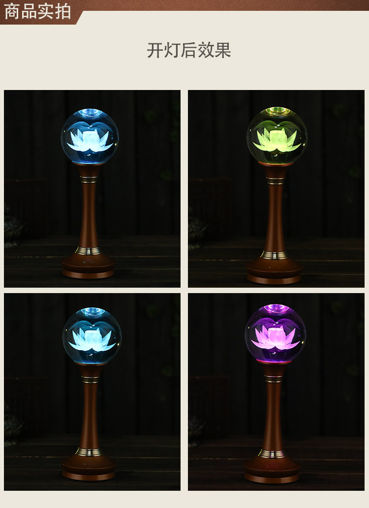 莲花灯佛前灯长明灯佛供灯佛灯结缘LED供佛灯水晶球七彩莲花宝灯