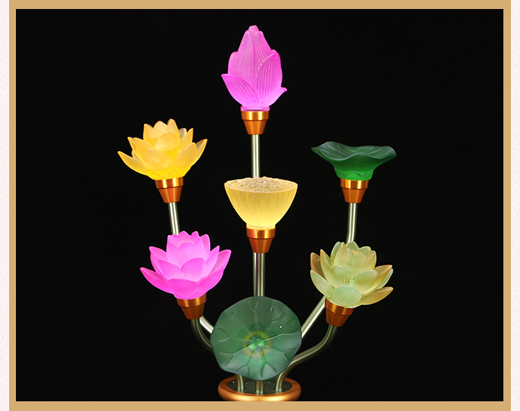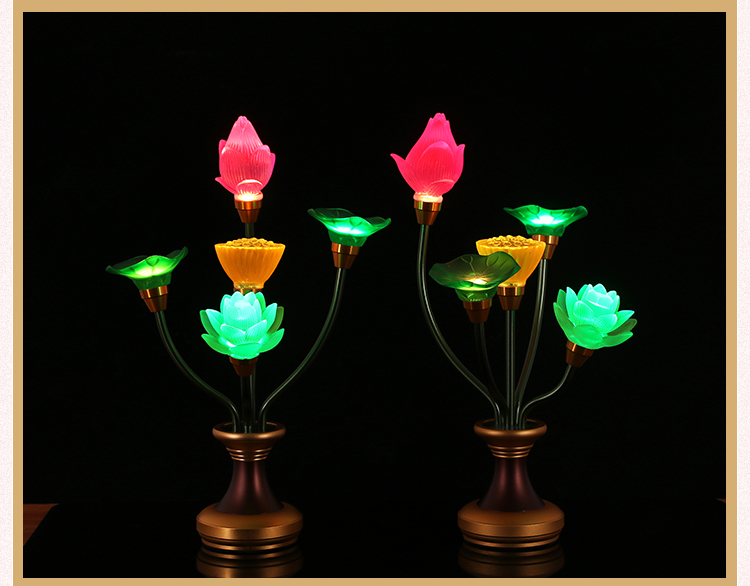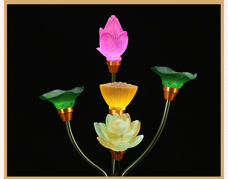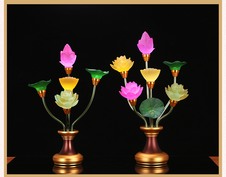 琉璃莲花灯LED七彩电供灯供佛灯纯铜佛供灯佛前供奉荷花灯长明灯