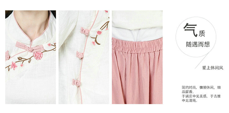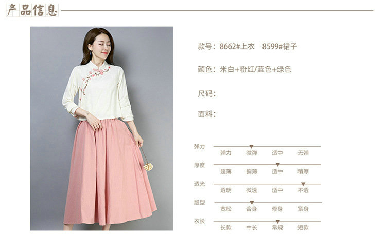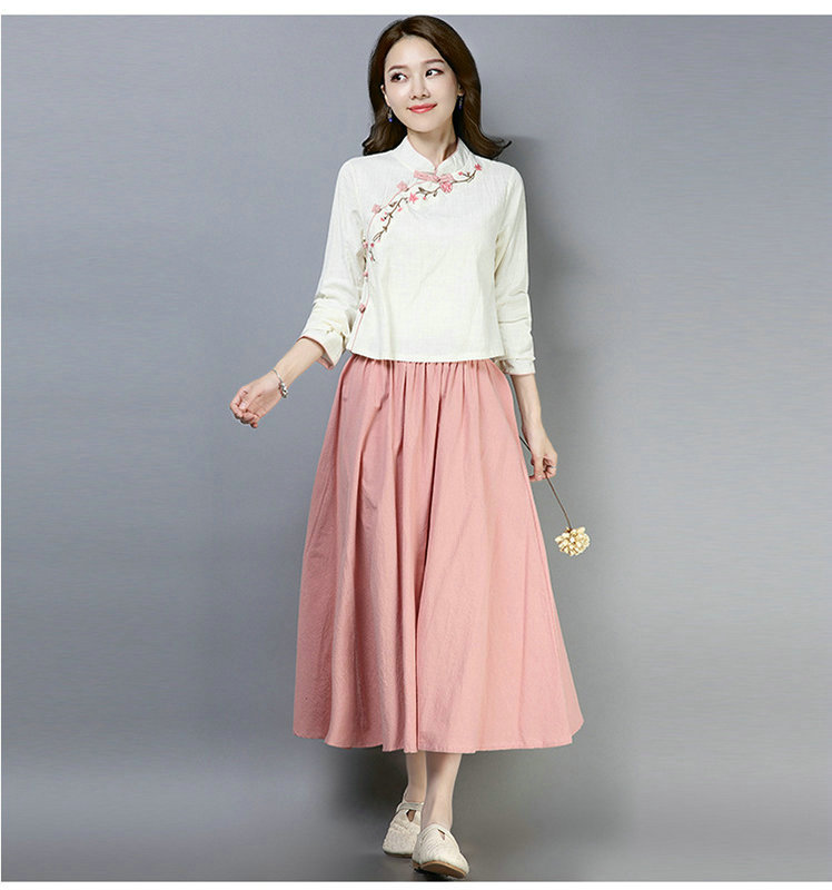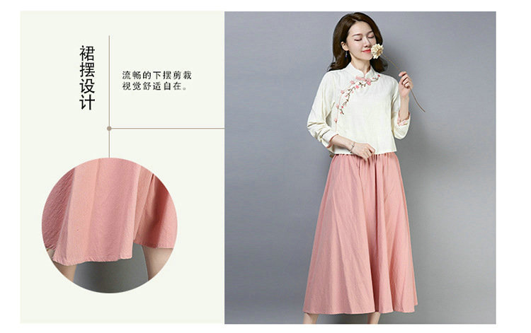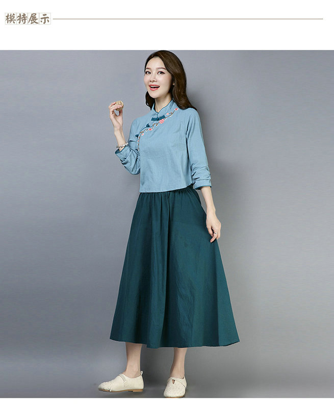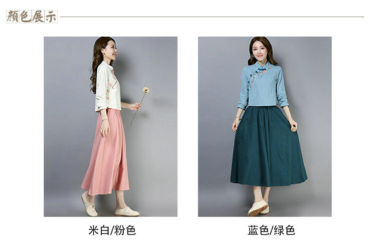 秋新款民族风棉麻女装文艺复古立领绣花上衣半身裙套装