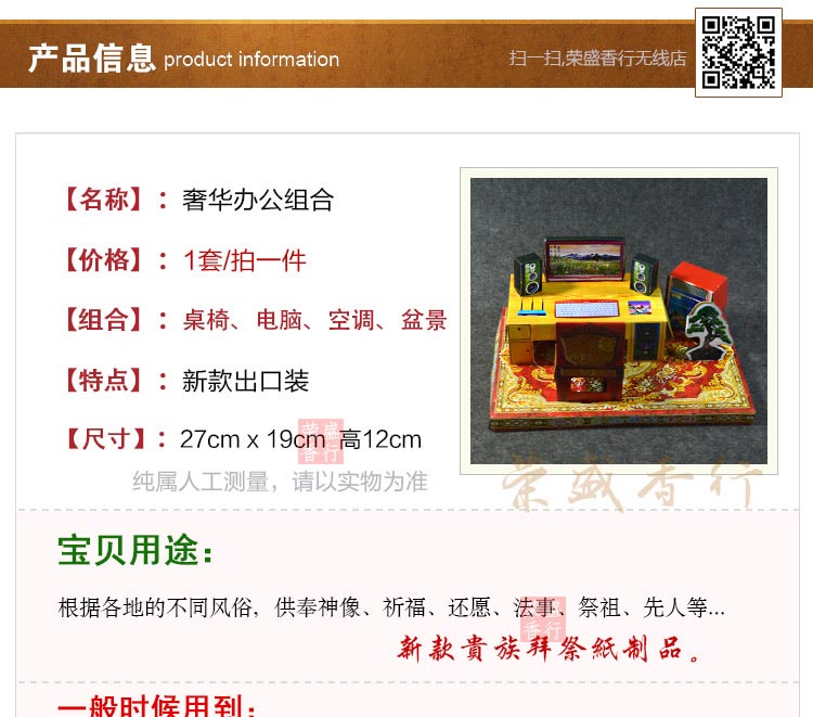 办公组合 祭祀纸品 电脑办公桌套装 空调立体纸扎品 祭祖扫墓烧纸