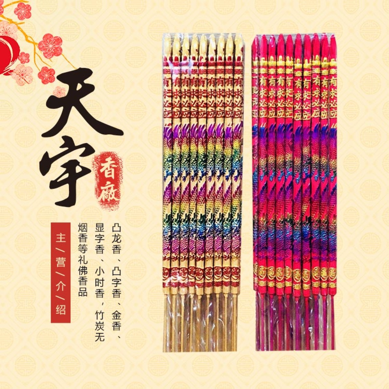 天宇香行 凸龙香 凸字香 金香 显字香 小时香 竹炭无烟香等礼佛香品