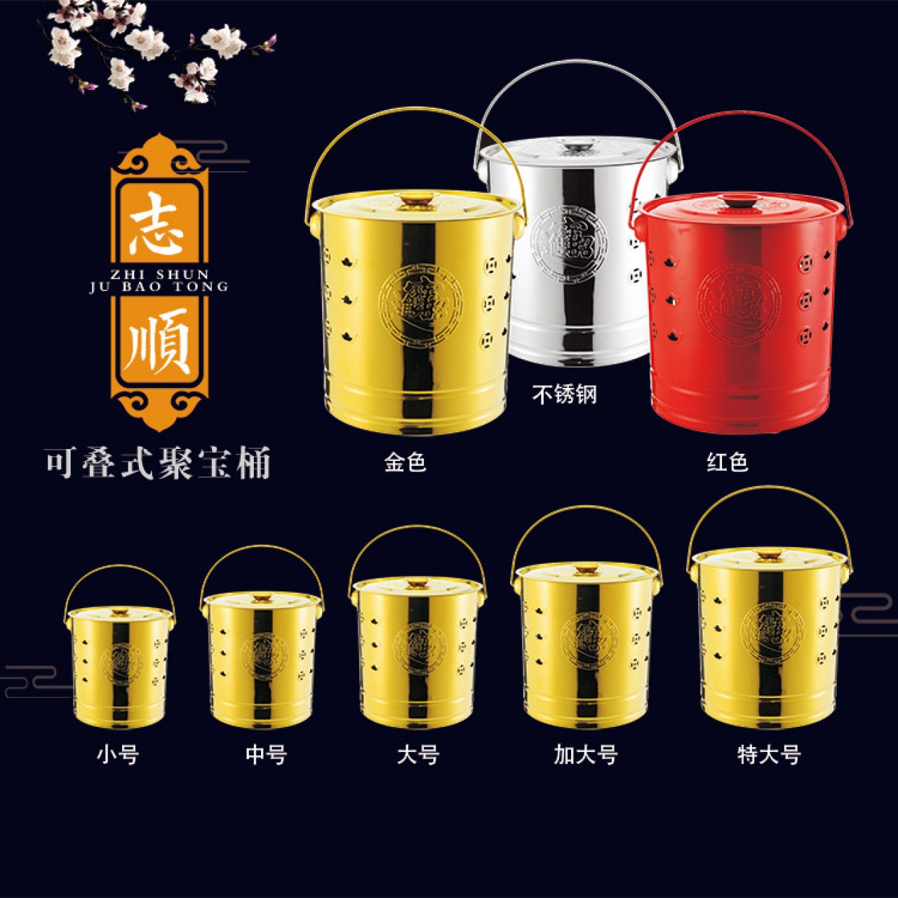 志顺 可叠式聚宝桶不绣钢制品