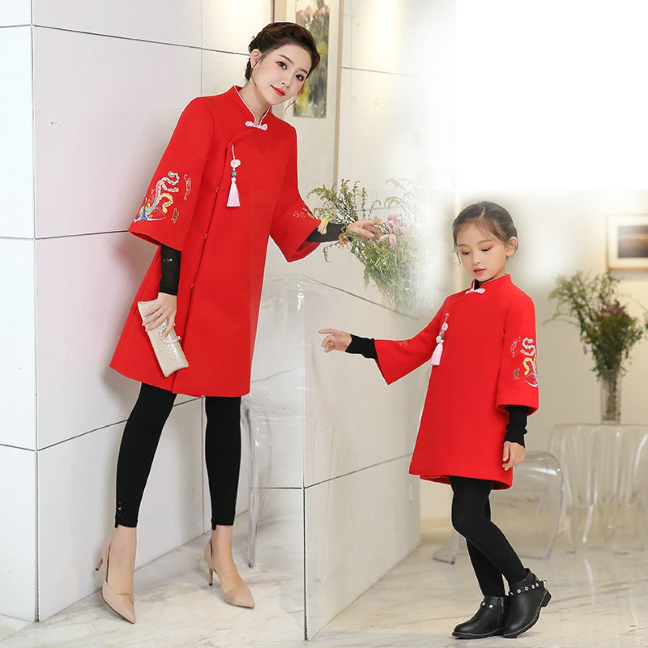 延禧攻略同款亲子装加厚保暖中国风改良汉服外套冬装毛呢大衣