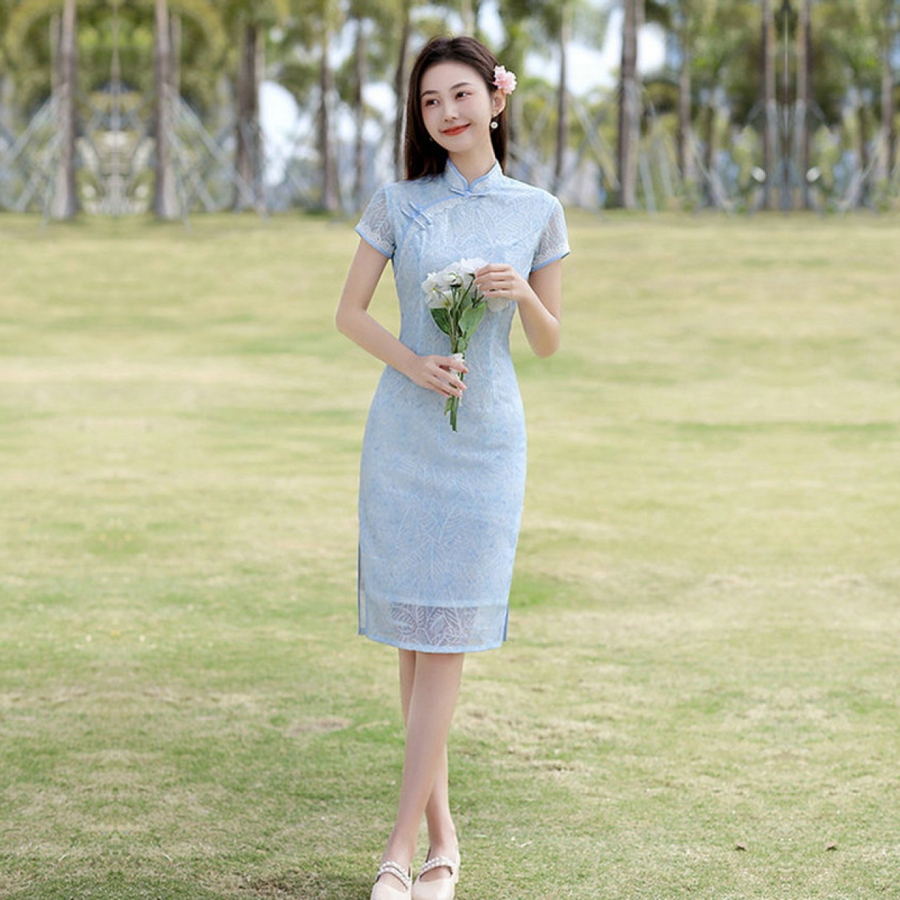 新款复古年轻款少女小清新甜美改良蕾丝连衣裙夏季