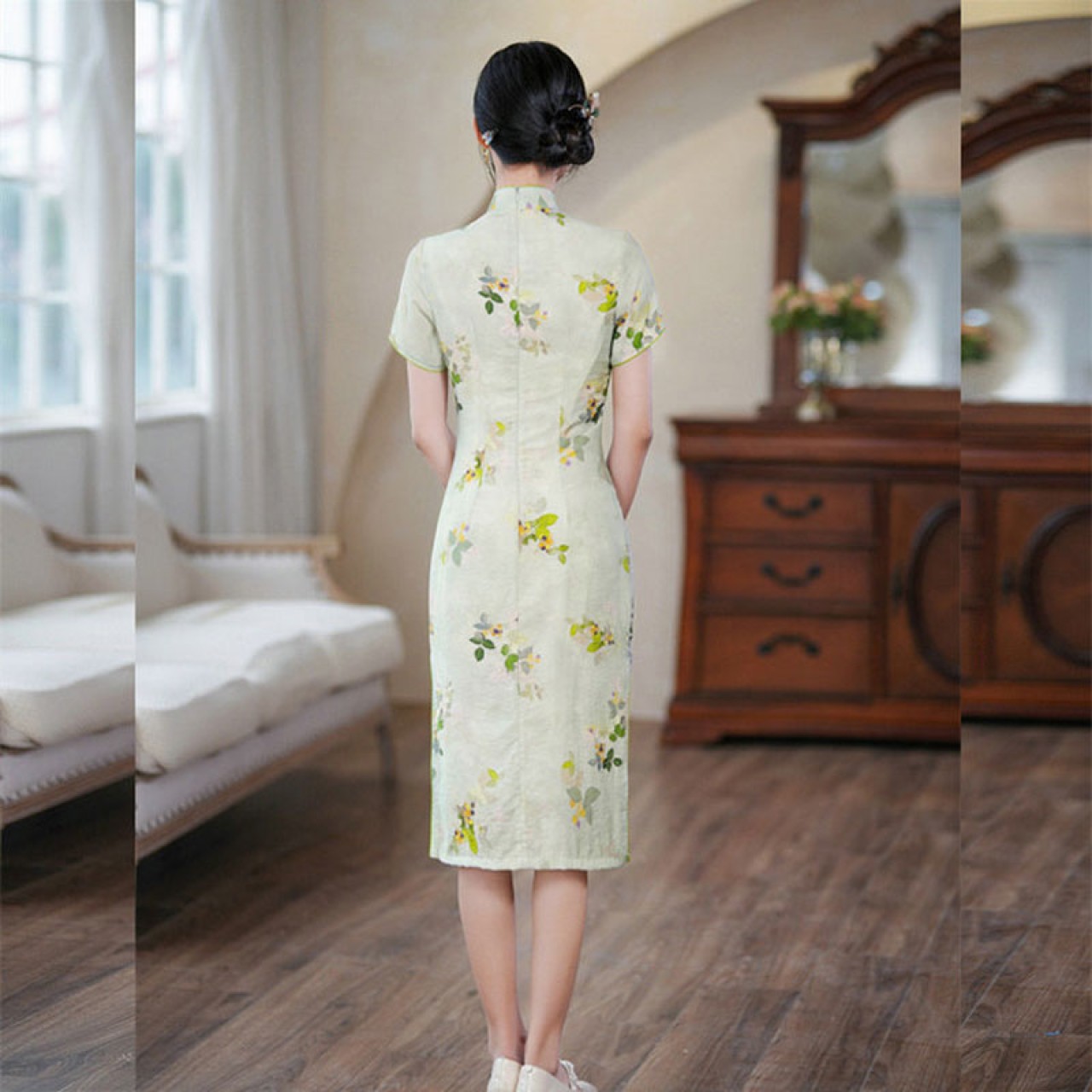 新款年轻款日常连衣裙绿色高端气质长旗袍