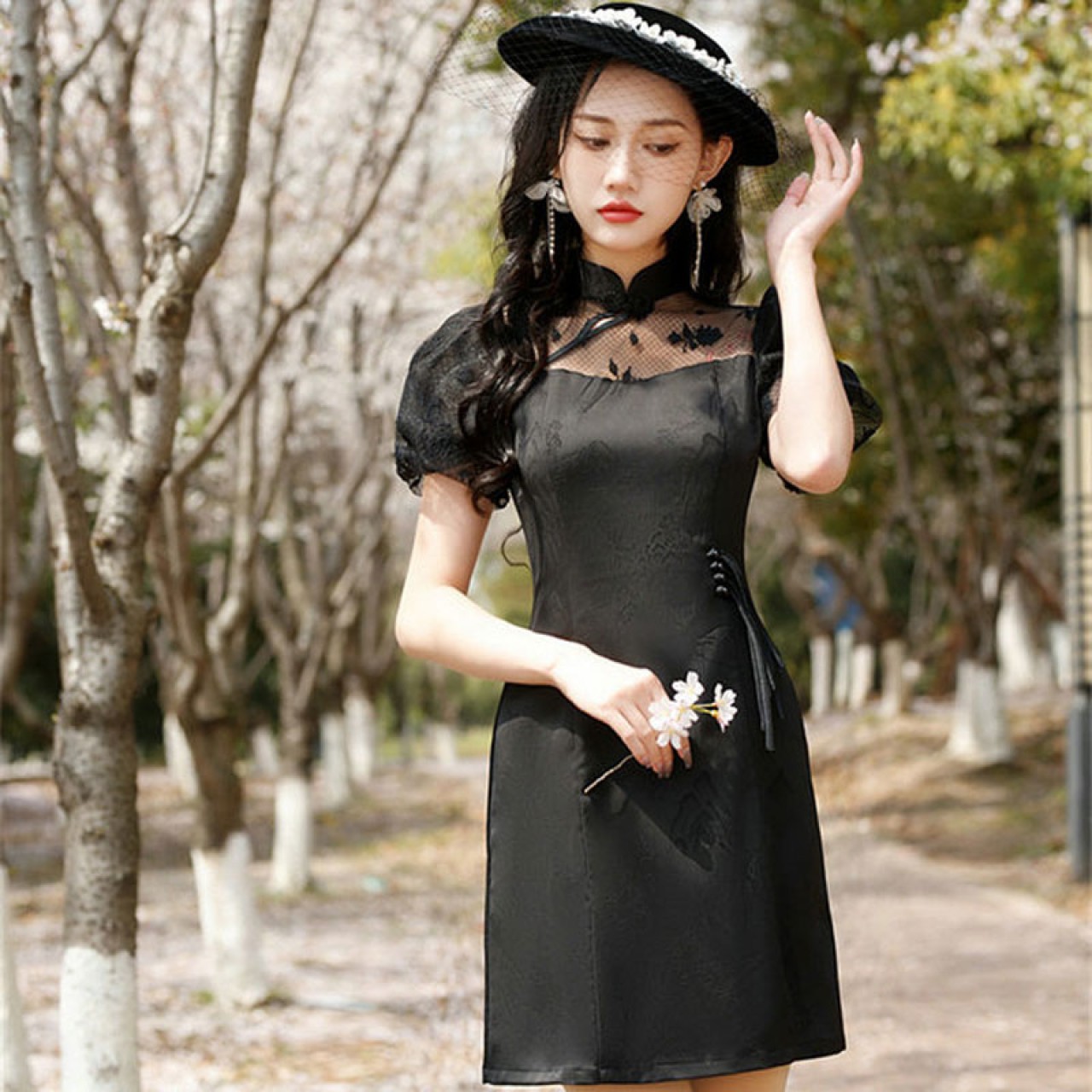 新款少女小个子短款旗袍连衣裙泡泡袖优雅时尚日常旗袍