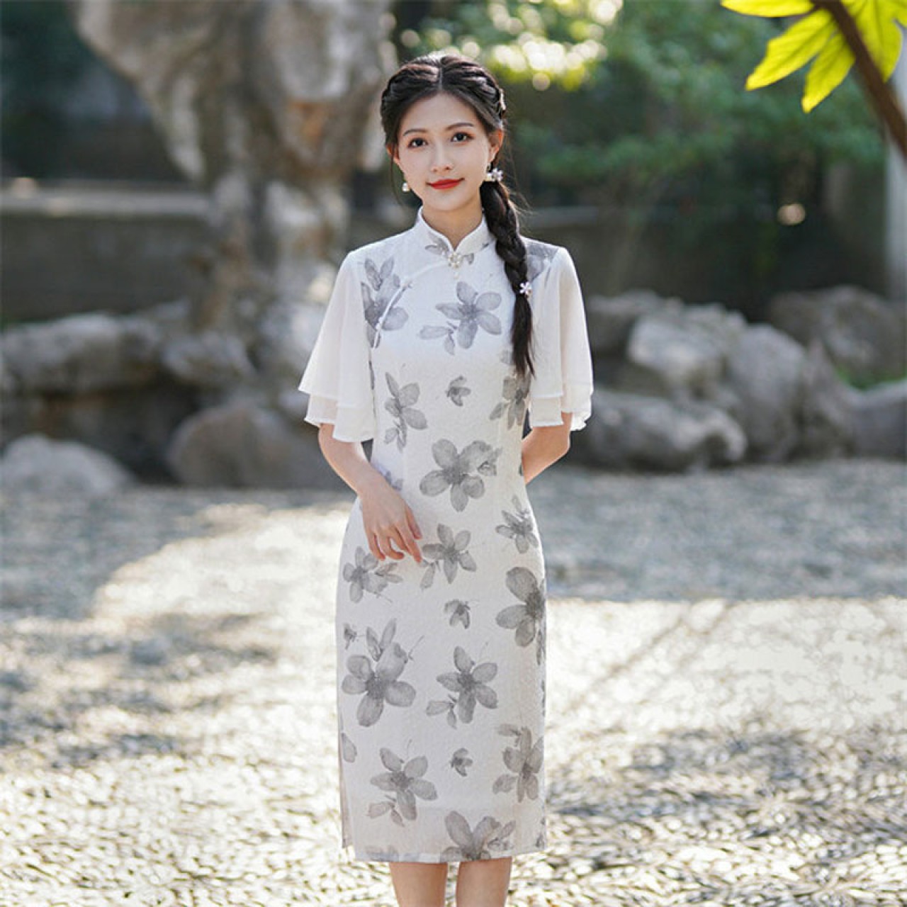 夏季修身显瘦淑女年轻飞飞袖拼接连衣裙旗袍